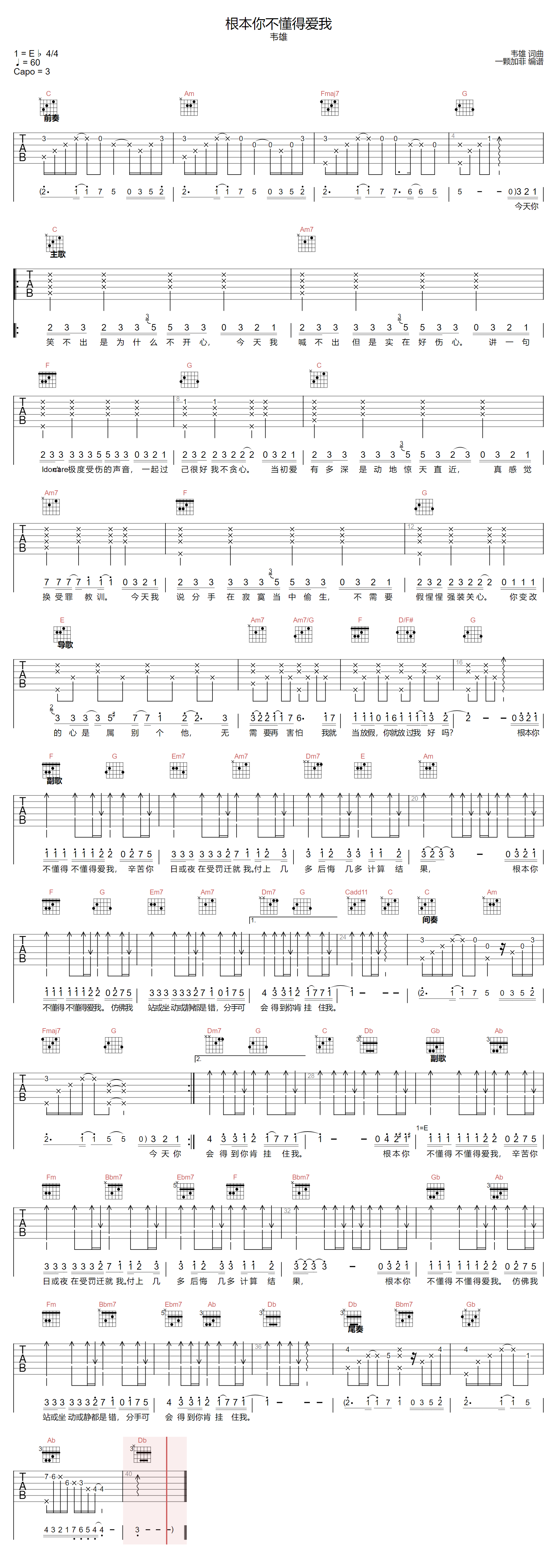 《韦雄《根本你不懂得爱我吉他谱》(C调)》内容来自于互联网,不能保证内容的准确性与完整性,仅供学习交流欣赏,请勿用于其它用途,内容版权归原作者及来源网站所有,如有侵犯到您的权益请来信告知,我们将及时删除。