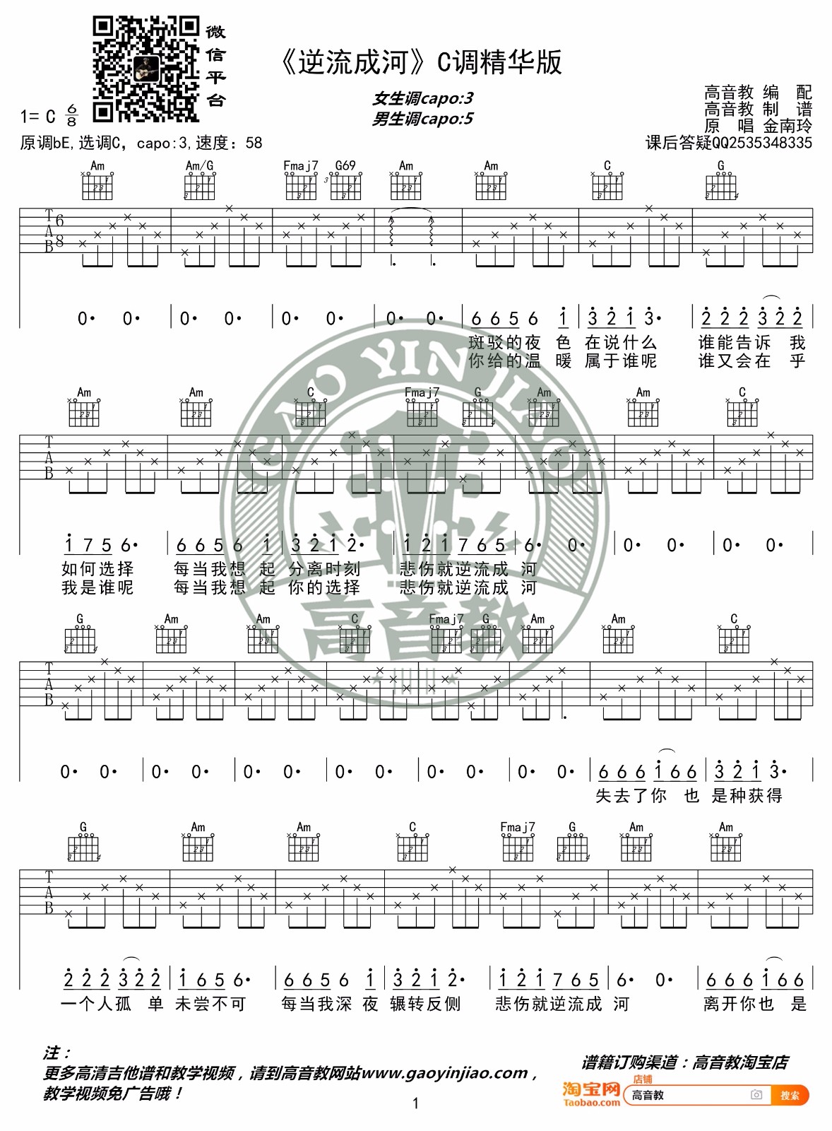 《金南玲《逆流成河吉他谱》(C调)》内容来自于互联网,不能保证内容的准确性与完整性,仅供学习交流欣赏,请勿用于其它用途,内容版权归原作者及来源网站所有,如有侵犯到您的权益请来信告知,我们将及时删除。