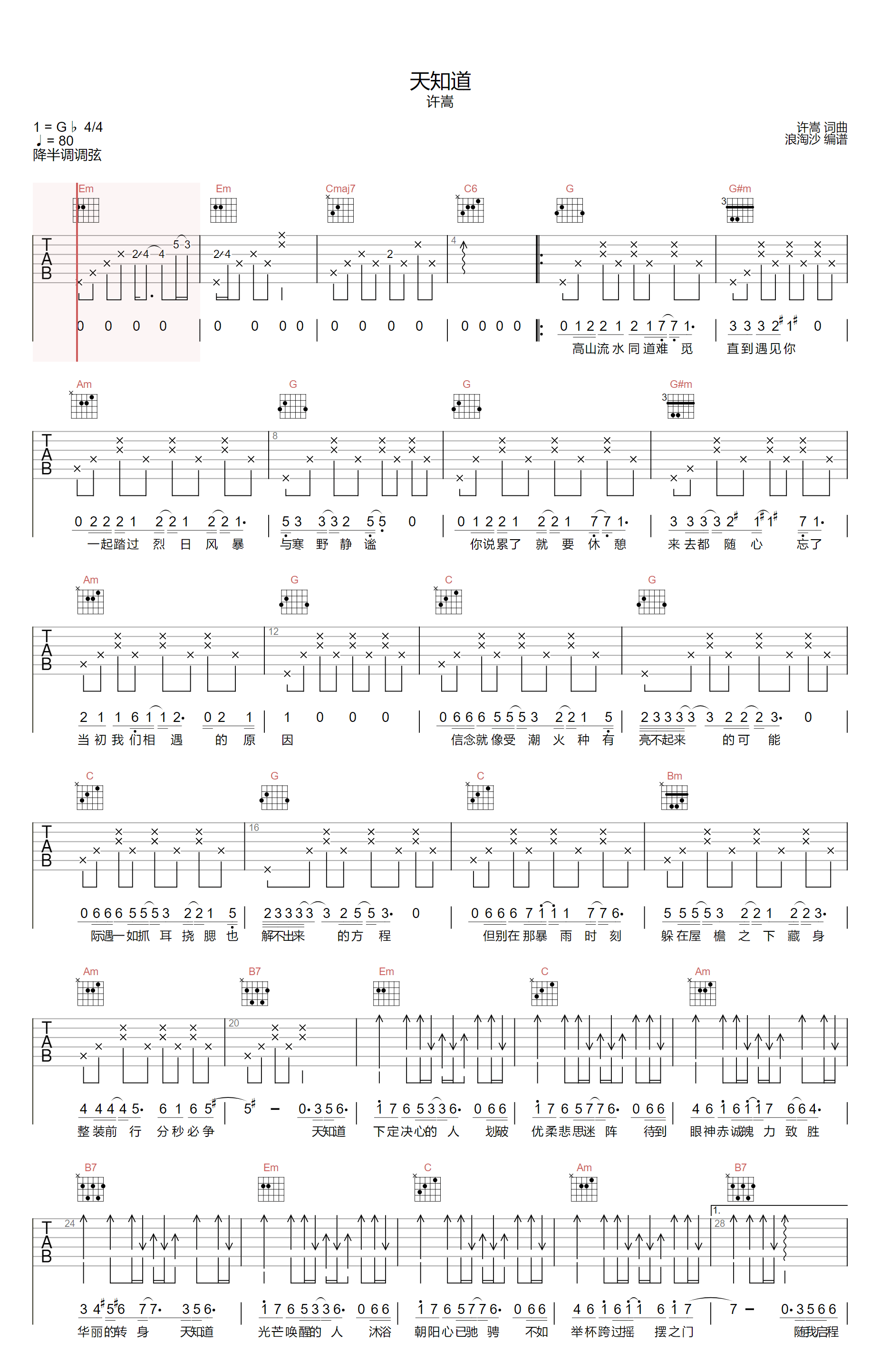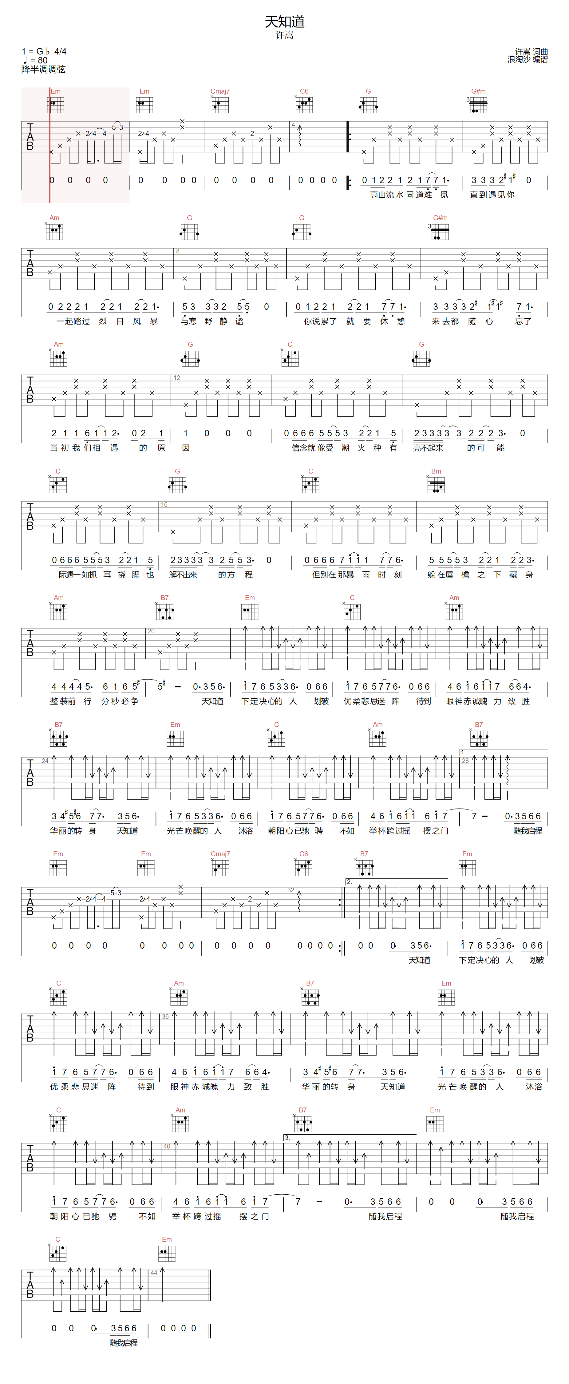《许嵩《天知道吉他谱》(G调)》内容来自于互联网,不能保证内容的准确性与完整性,仅供学习交流欣赏,请勿用于其它用途,内容版权归原作者及来源网站所有,如有侵犯到您的权益请来信告知,我们将及时删除。