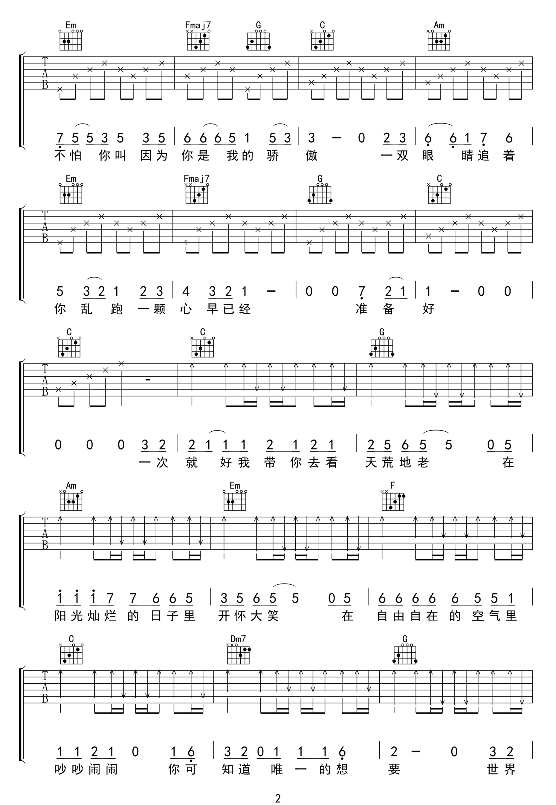 《杨宗纬《一次就好吉他谱》(C调)》内容来自于互联网,不能保证内容的准确性与完整性,仅供学习交流欣赏,请勿用于其它用途,内容版权归原作者及来源网站所有,如有侵犯到您的权益请来信告知,我们将及时删除。