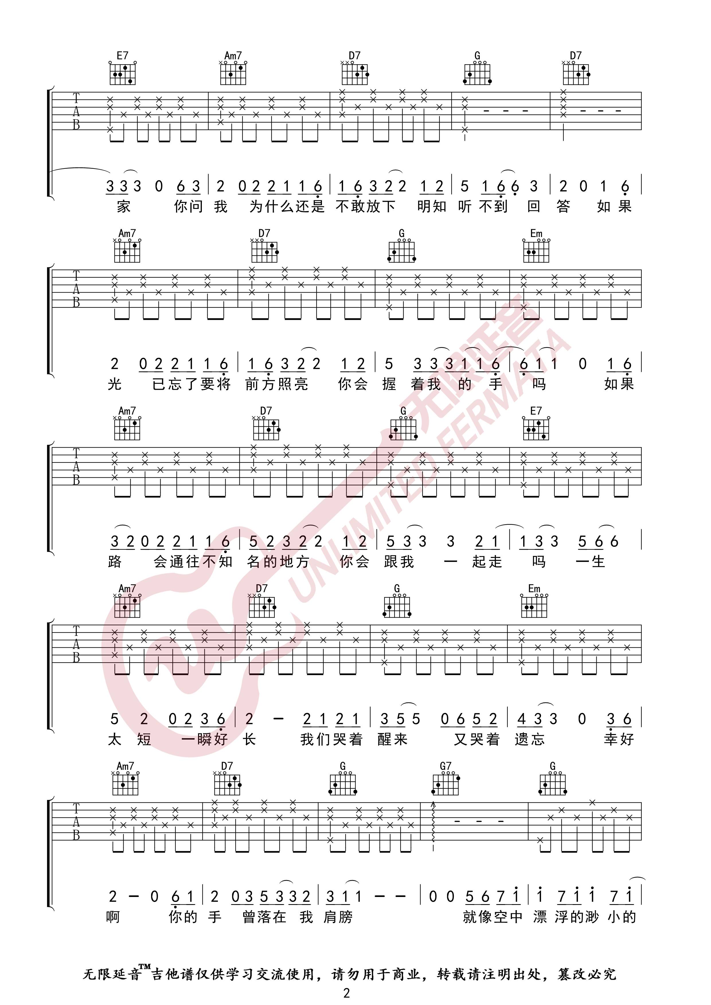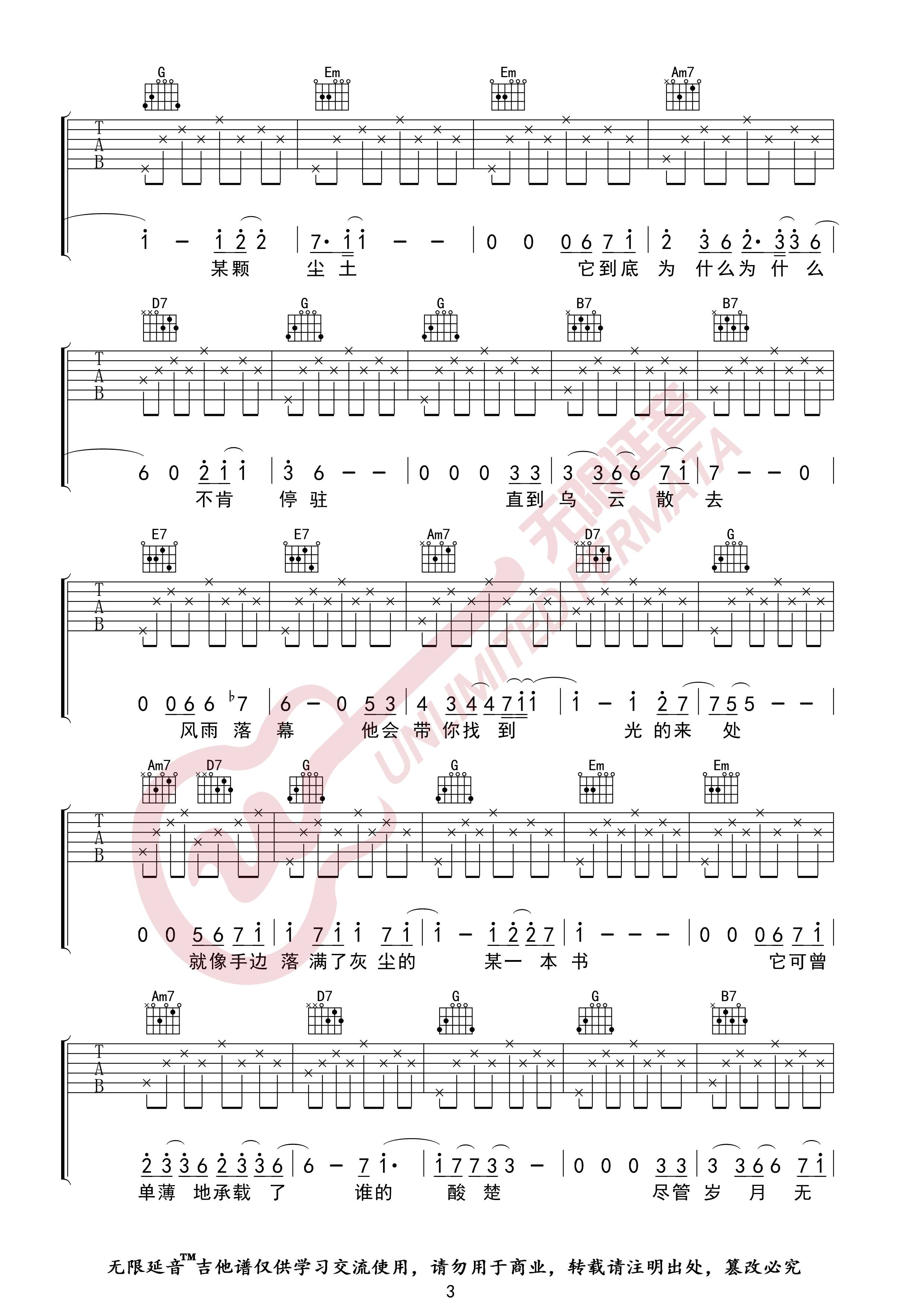 《毛不易《无问吉他谱》(G调)》内容来自于互联网,不能保证内容的准确性与完整性,仅供学习交流欣赏,请勿用于其它用途,内容版权归原作者及来源网站所有,如有侵犯到您的权益请来信告知,我们将及时删除。
