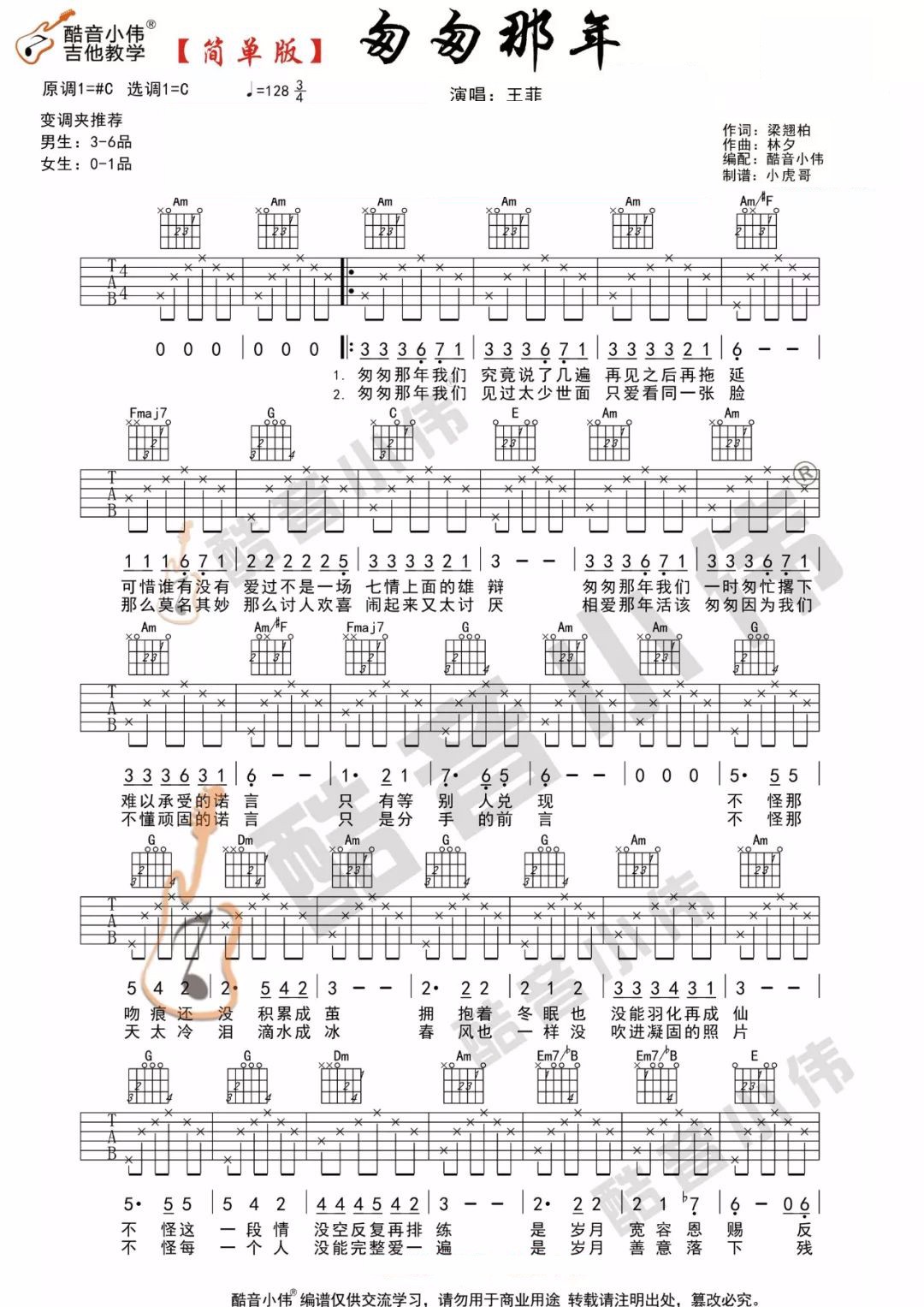 《王菲《匆匆那年吉他谱》(C调)》内容来自于互联网,不能保证内容的准确性与完整性,仅供学习交流欣赏,请勿用于其它用途,内容版权归原作者及来源网站所有,如有侵犯到您的权益请来信告知,我们将及时删除。