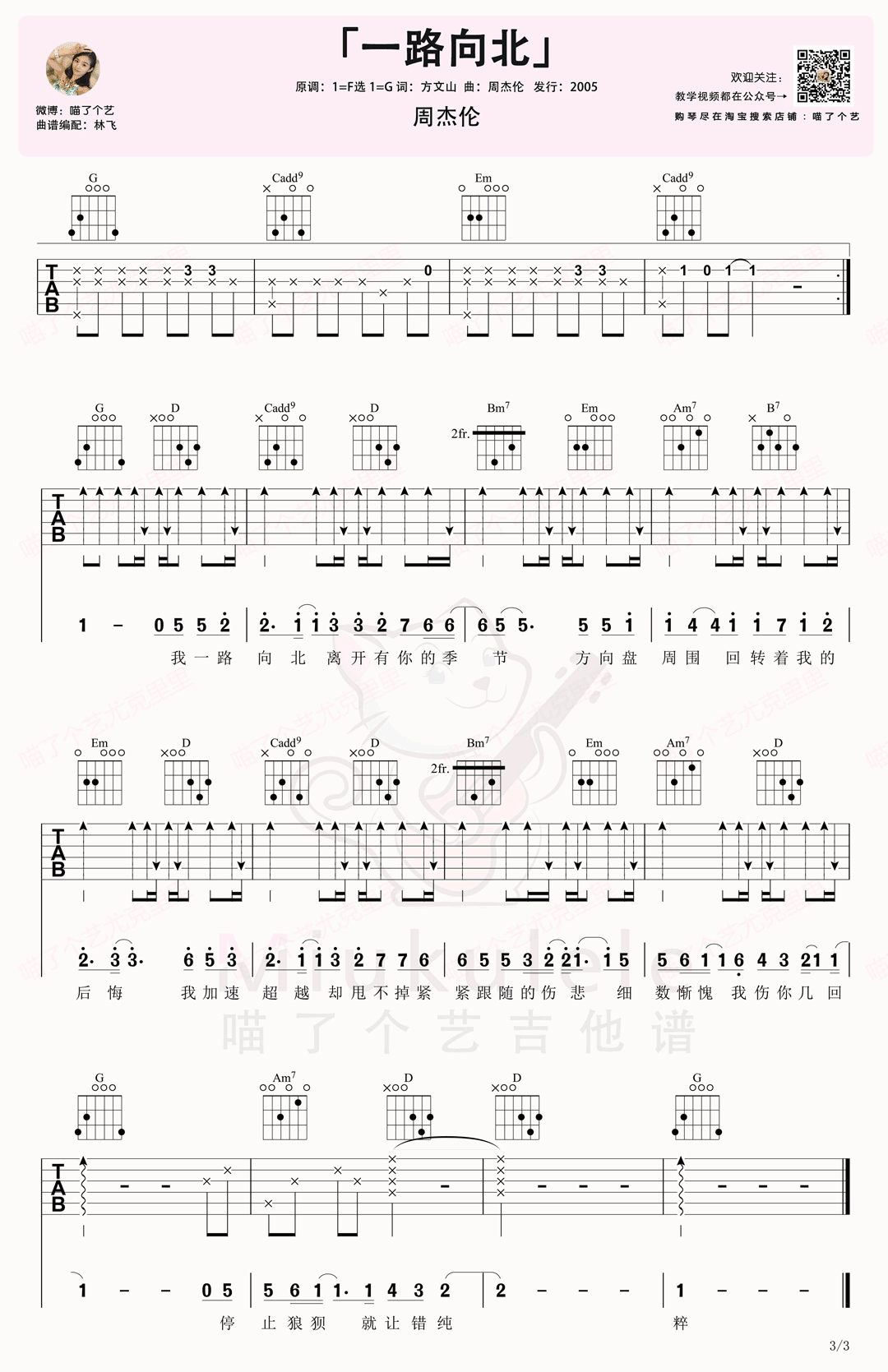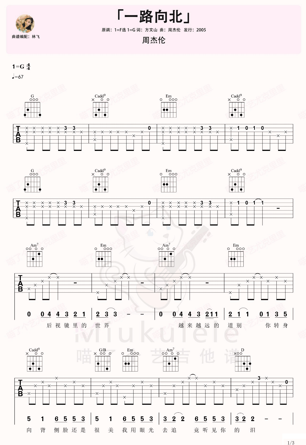 《周杰伦《一路向北吉他谱》(G调)》内容来自于互联网,不能保证内容的准确性与完整性,仅供学习交流欣赏,请勿用于其它用途,内容版权归原作者及来源网站所有,如有侵犯到您的权益请来信告知,我们将及时删除。