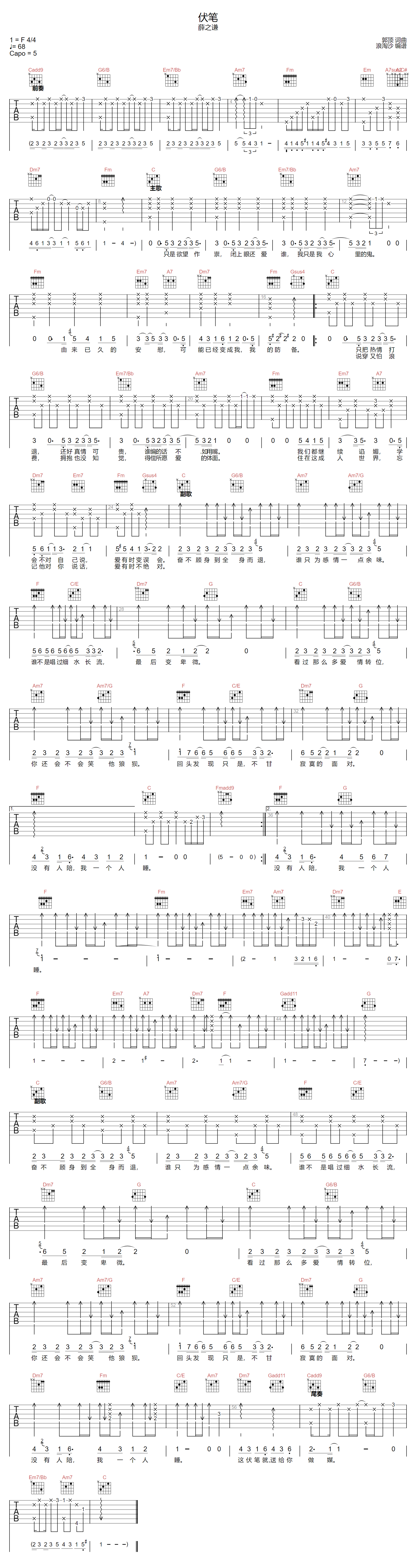 本文标题 《薛之谦《伏笔吉他谱》(A调)》,网址:https://www.21qupu.com/guitar/62172.html