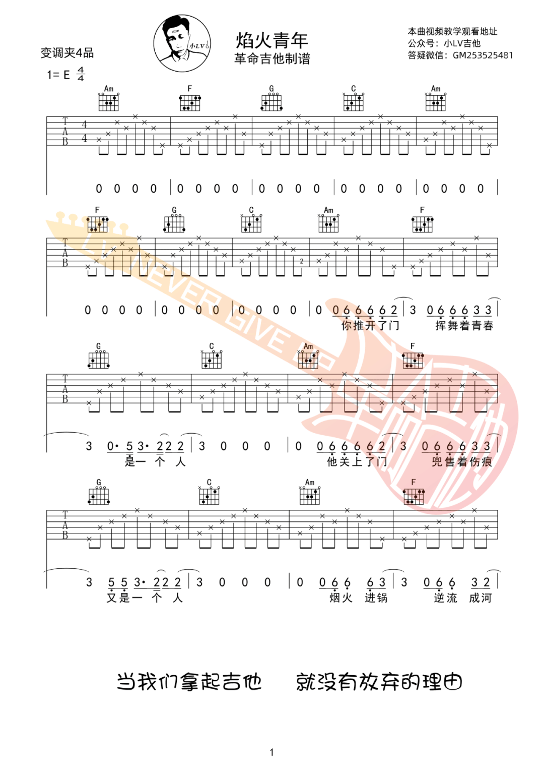 《华北浪革《焰火青年吉他谱》(G调)》内容来自于互联网,不能保证内容的准确性与完整性,仅供学习交流欣赏,请勿用于其它用途,内容版权归原作者及来源网站所有,如有侵犯到您的权益请来信告知,我们将及时删除。