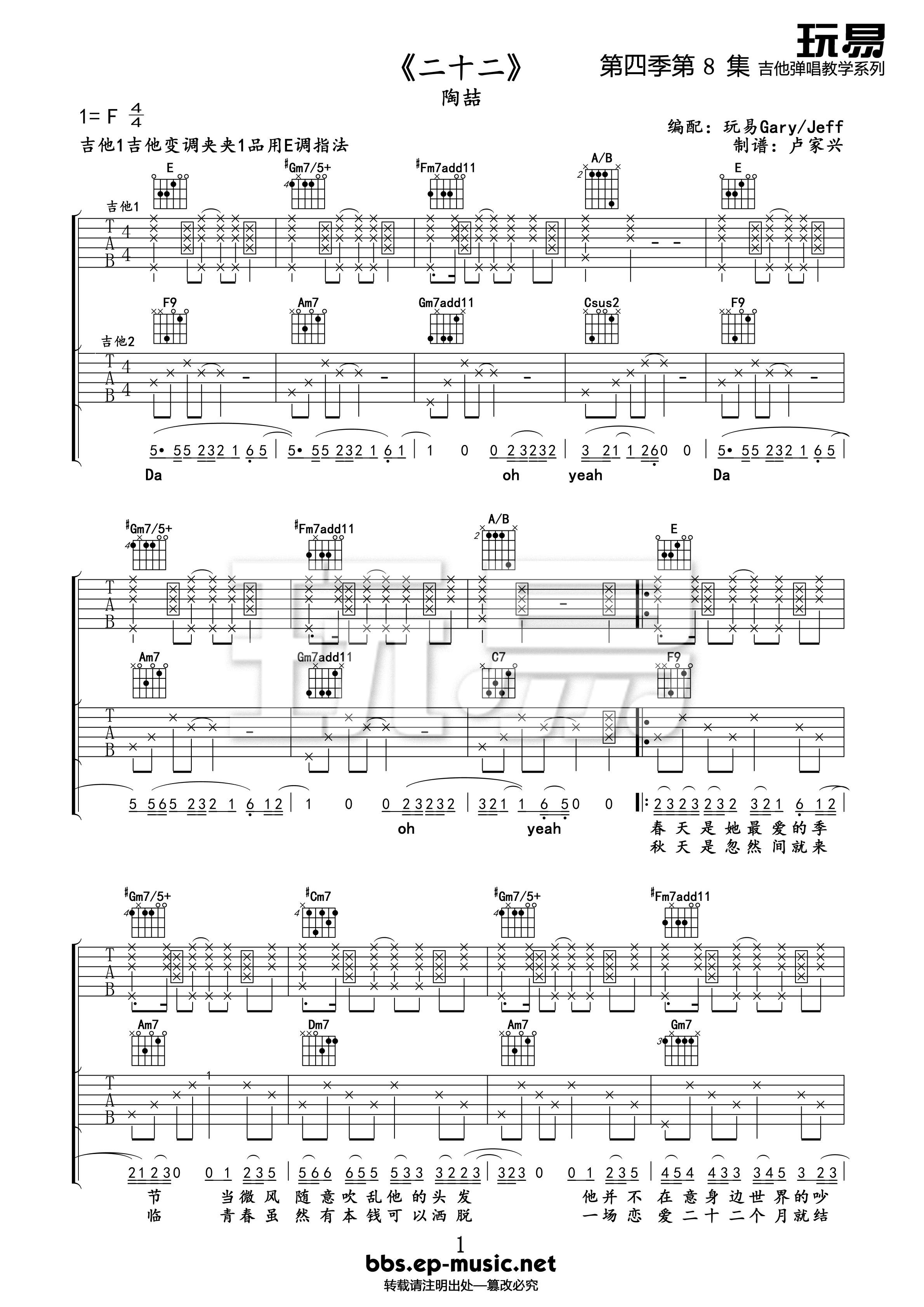 《陶喆《二十二吉他谱》(D调)》内容来自于互联网,不能保证内容的准确性与完整性,仅供学习交流欣赏,请勿用于其它用途,内容版权归原作者及来源网站所有,如有侵犯到您的权益请来信告知,我们将及时删除。