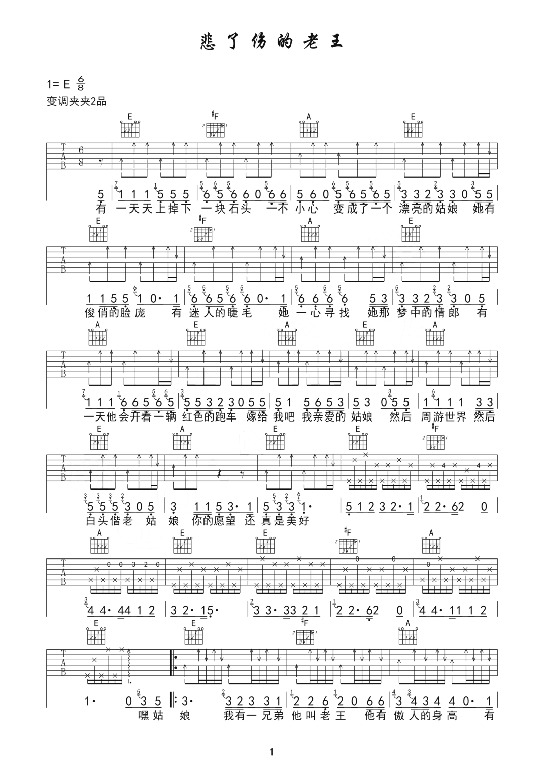 《宋冬野《悲了伤的老王吉他谱》(G调)》内容来自于互联网,不能保证内容的准确性与完整性,仅供学习交流欣赏,请勿用于其它用途,内容版权归原作者及来源网站所有,如有侵犯到您的权益请来信告知,我们将及时删除。