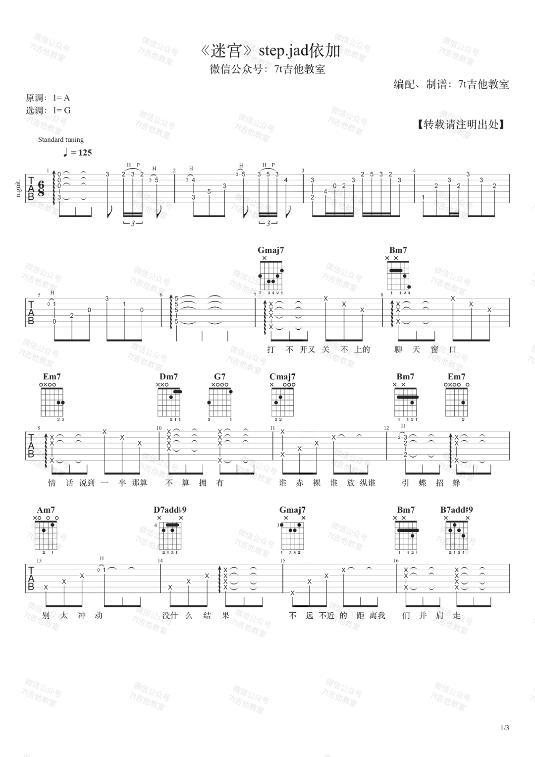 《step.jad依加《迷宫吉他谱》(G调)》内容来自于互联网,不能保证内容的准确性与完整性,仅供学习交流欣赏,请勿用于其它用途,内容版权归原作者及来源网站所有,如有侵犯到您的权益请来信告知,我们将及时删除。