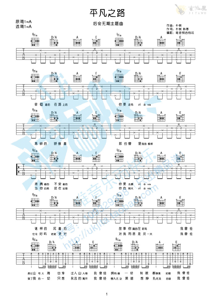 《朴树《平凡之路吉他谱》(C调)》内容来自于互联网,不能保证内容的准确性与完整性,仅供学习交流欣赏,请勿用于其它用途,内容版权归原作者及来源网站所有,如有侵犯到您的权益请来信告知,我们将及时删除。