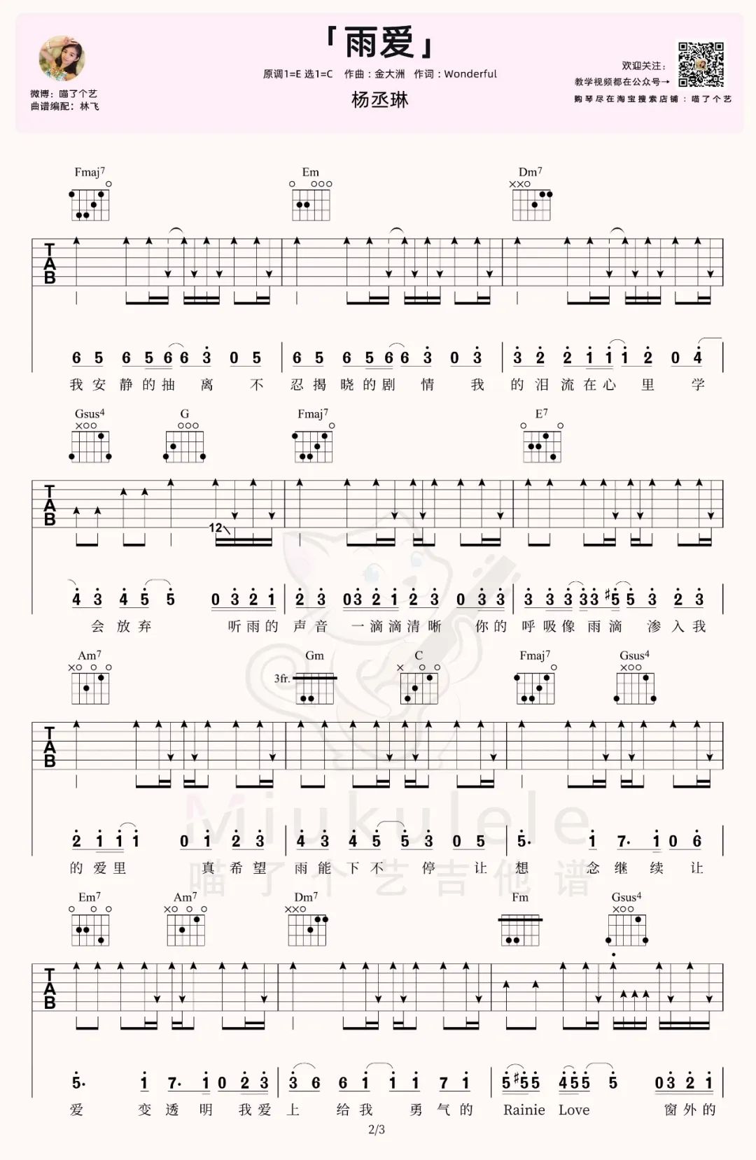 《杨丞琳《雨爱吉他谱》(G调)》内容来自于互联网,不能保证内容的准确性与完整性,仅供学习交流欣赏,请勿用于其它用途,内容版权归原作者及来源网站所有,如有侵犯到您的权益请来信告知,我们将及时删除。