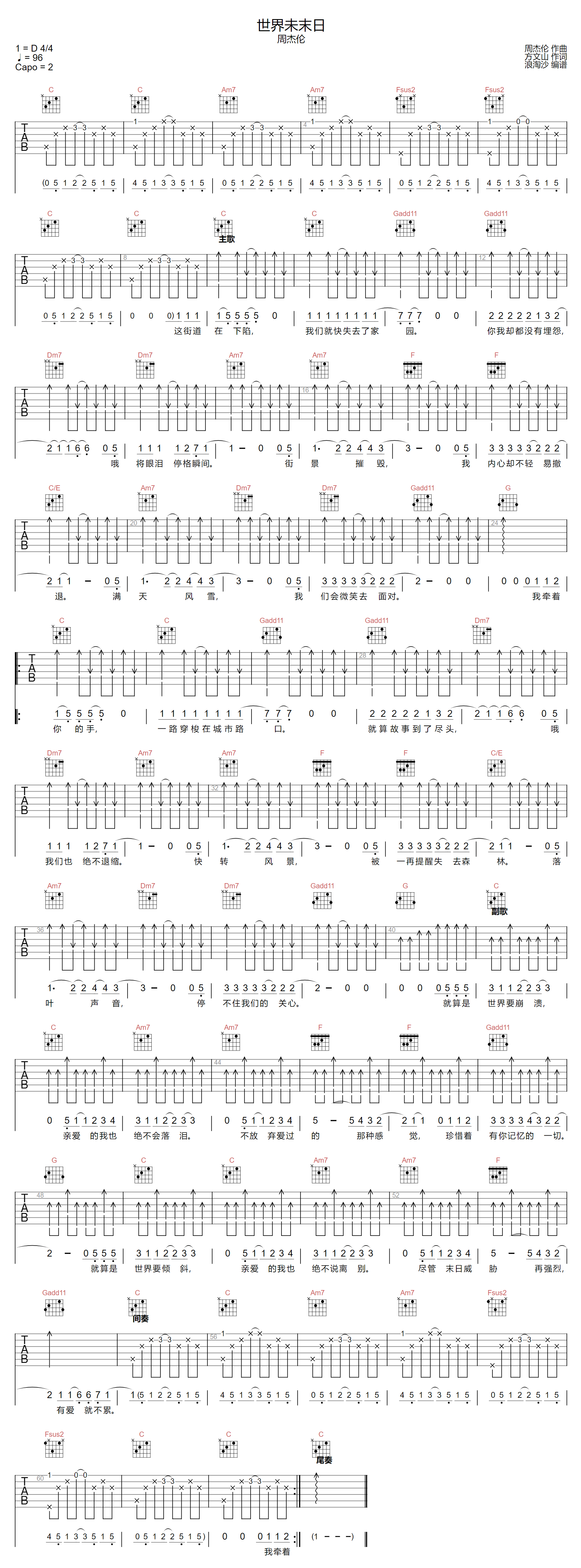 《周杰伦《世界未末日吉他谱》(G调)》内容来自于互联网,不能保证内容的准确性与完整性,仅供学习交流欣赏,请勿用于其它用途,内容版权归原作者及来源网站所有,如有侵犯到您的权益请来信告知,我们将及时删除。