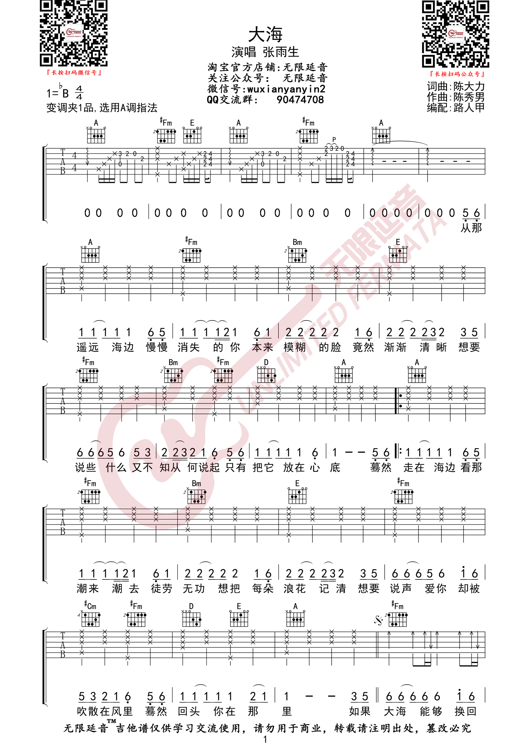 《张雨生《大海吉他谱》(G调)》内容来自于互联网,不能保证内容的准确性与完整性,仅供学习交流欣赏,请勿用于其它用途,内容版权归原作者及来源网站所有,如有侵犯到您的权益请来信告知,我们将及时删除。