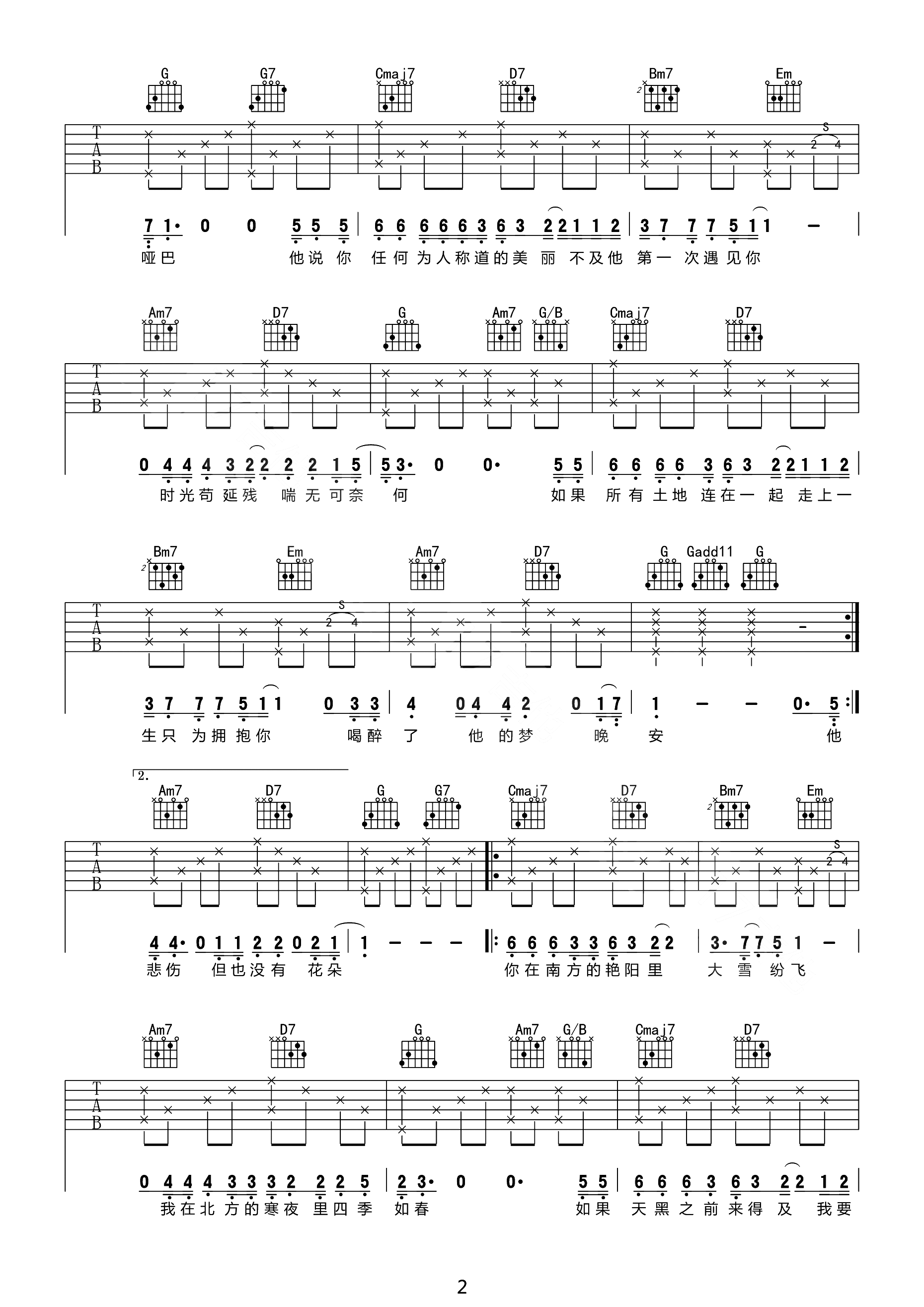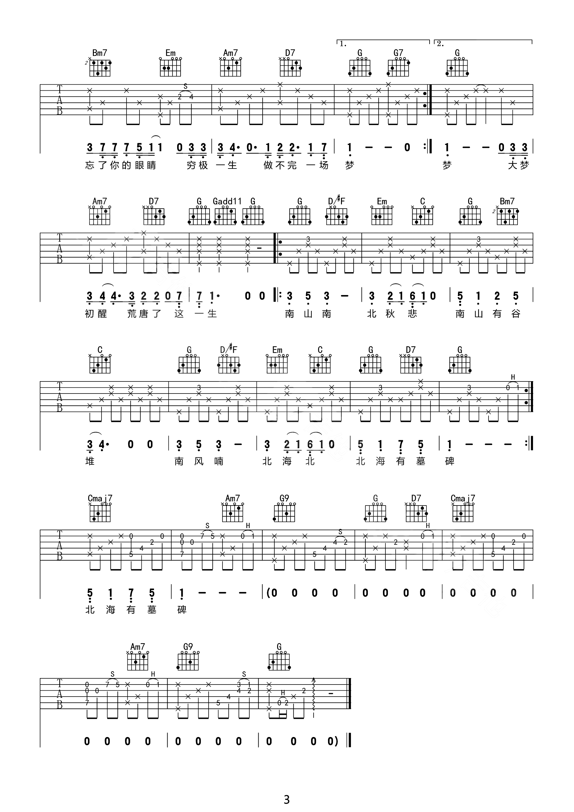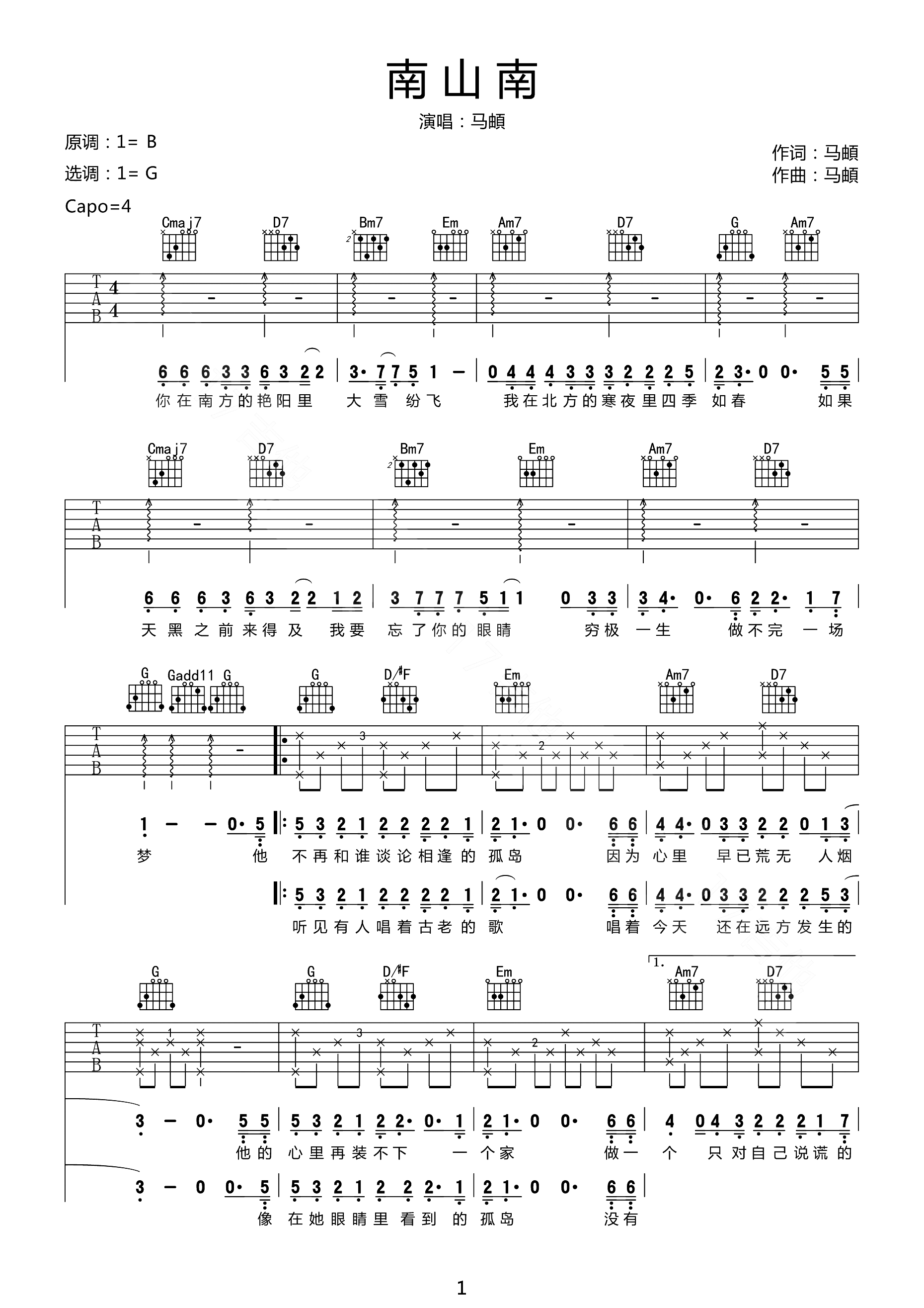 《马頔《南山南吉他谱》(E调)》内容来自于互联网,不能保证内容的准确性与完整性,仅供学习交流欣赏,请勿用于其它用途,内容版权归原作者及来源网站所有,如有侵犯到您的权益请来信告知,我们将及时删除。