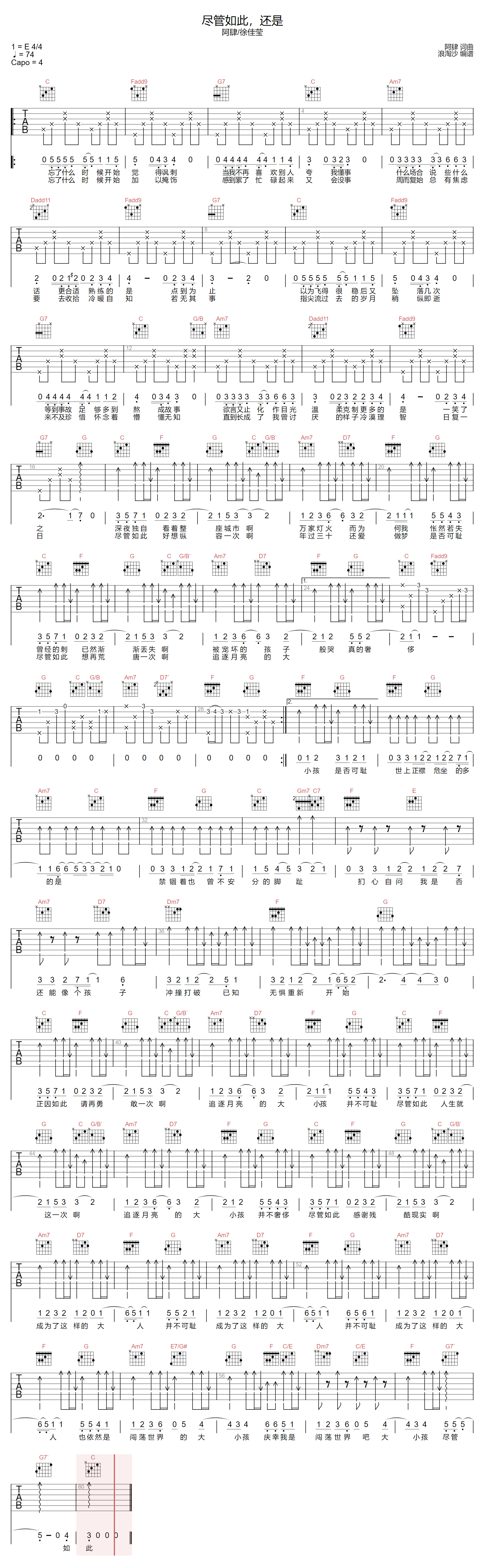 《阿肆/徐佳莹《尽管如此还是吉他谱》(C调)》内容来自于互联网,不能保证内容的准确性与完整性,仅供学习交流欣赏,请勿用于其它用途,内容版权归原作者及来源网站所有,如有侵犯到您的权益请来信告知,我们将及时删除。