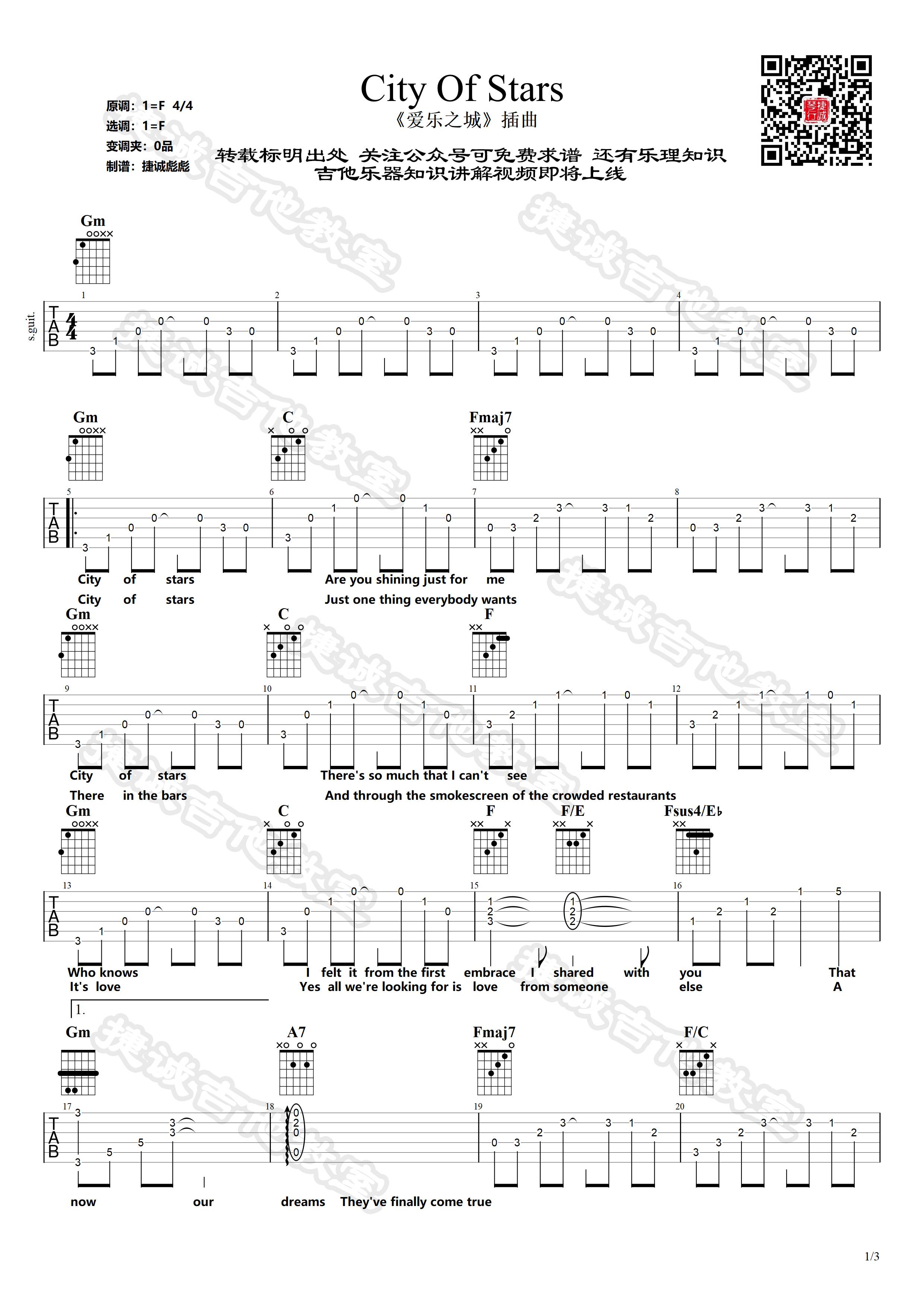 本文标题 《F调原版弹唱六线谱《City Of Stars吉他谱》(G调)》,网址:https://www.21qupu.com/guitar/62243.html
