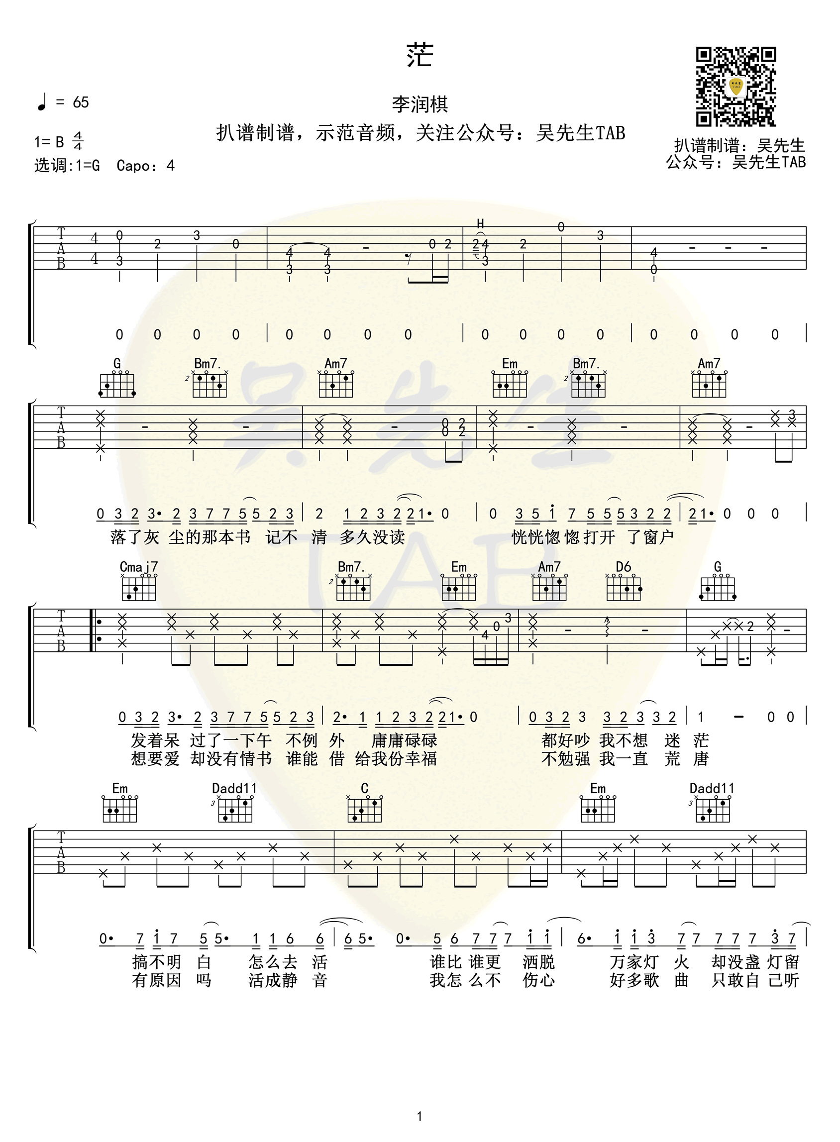 《李润祺《茫吉他谱》(G调)》内容来自于互联网,不能保证内容的准确性与完整性,仅供学习交流欣赏,请勿用于其它用途,内容版权归原作者及来源网站所有,如有侵犯到您的权益请来信告知,我们将及时删除。
