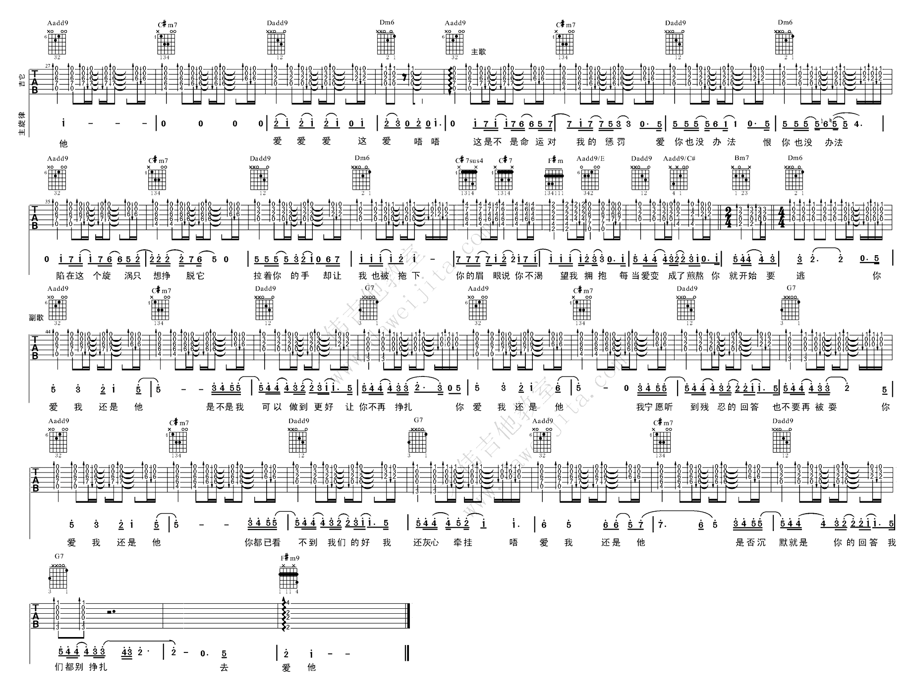 《陶喆《爱我还是他吉他谱》(C调)》内容来自于互联网,不能保证内容的准确性与完整性,仅供学习交流欣赏,请勿用于其它用途,内容版权归原作者及来源网站所有,如有侵犯到您的权益请来信告知,我们将及时删除。