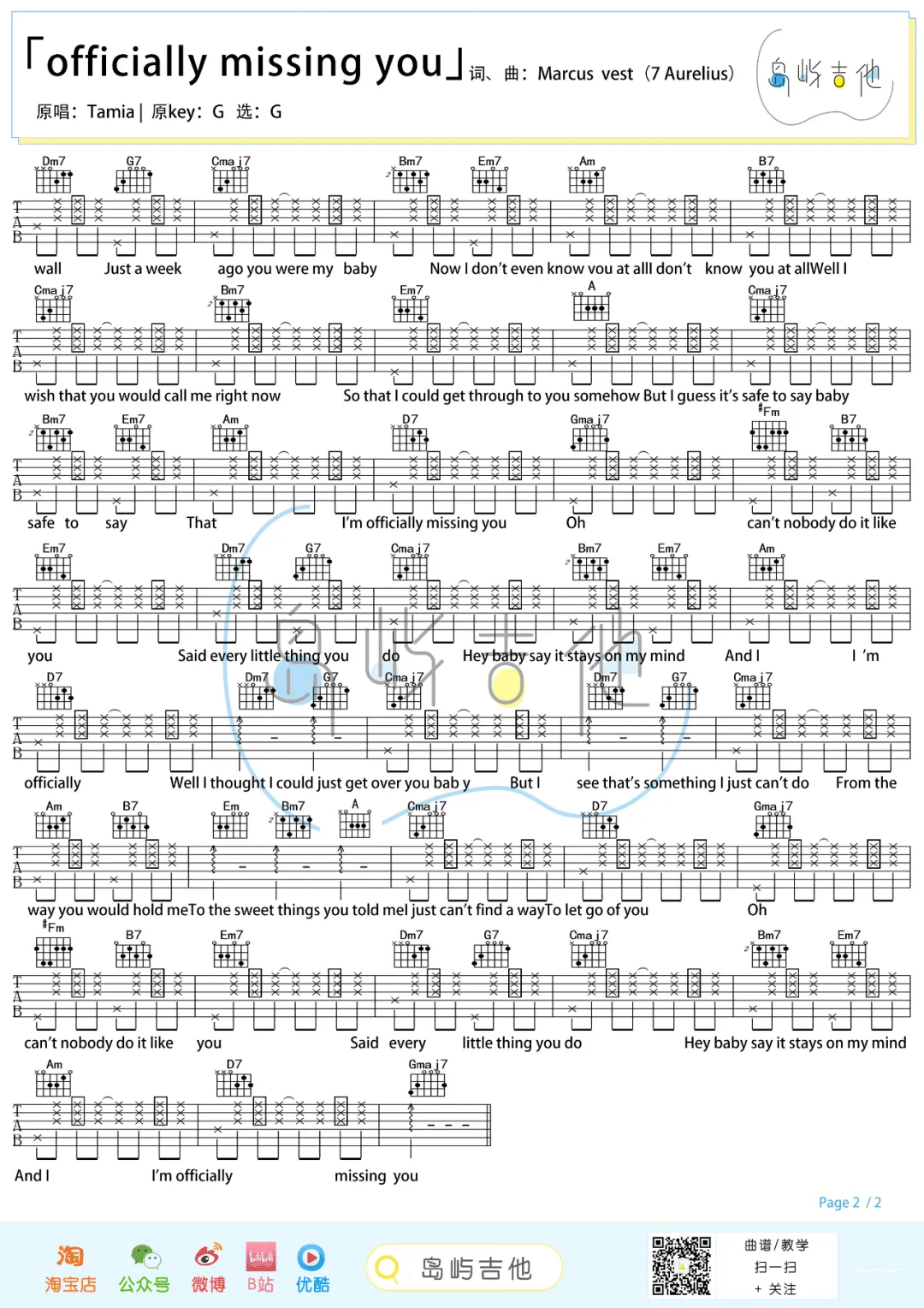 《Tamia《Officially Missing You吉他谱》(E调)》内容来自于互联网,不能保证内容的准确性与完整性,仅供学习交流欣赏,请勿用于其它用途,内容版权归原作者及来源网站所有,如有侵犯到您的权益请来信告知,我们将及时删除。