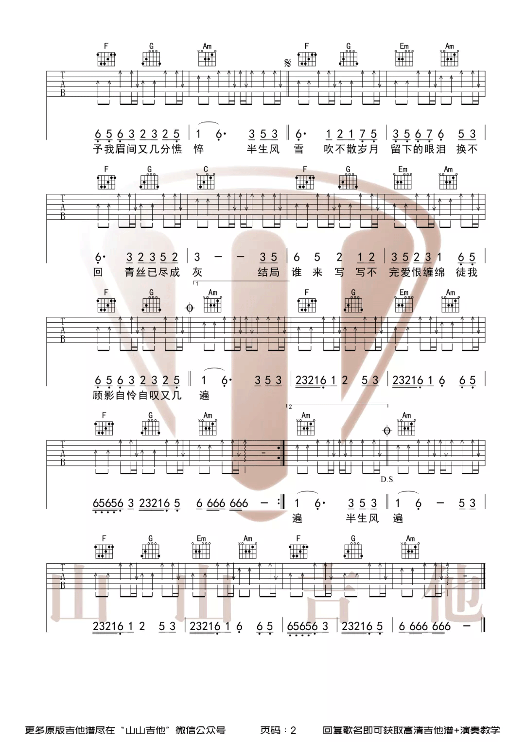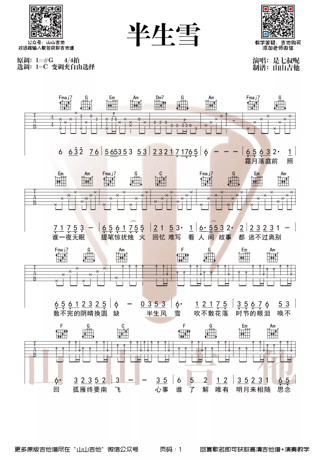 《是七叔呢《半生雪吉他谱》(C调)》内容来自于互联网,不能保证内容的准确性与完整性,仅供学习交流欣赏,请勿用于其它用途,内容版权归原作者及来源网站所有,如有侵犯到您的权益请来信告知,我们将及时删除。