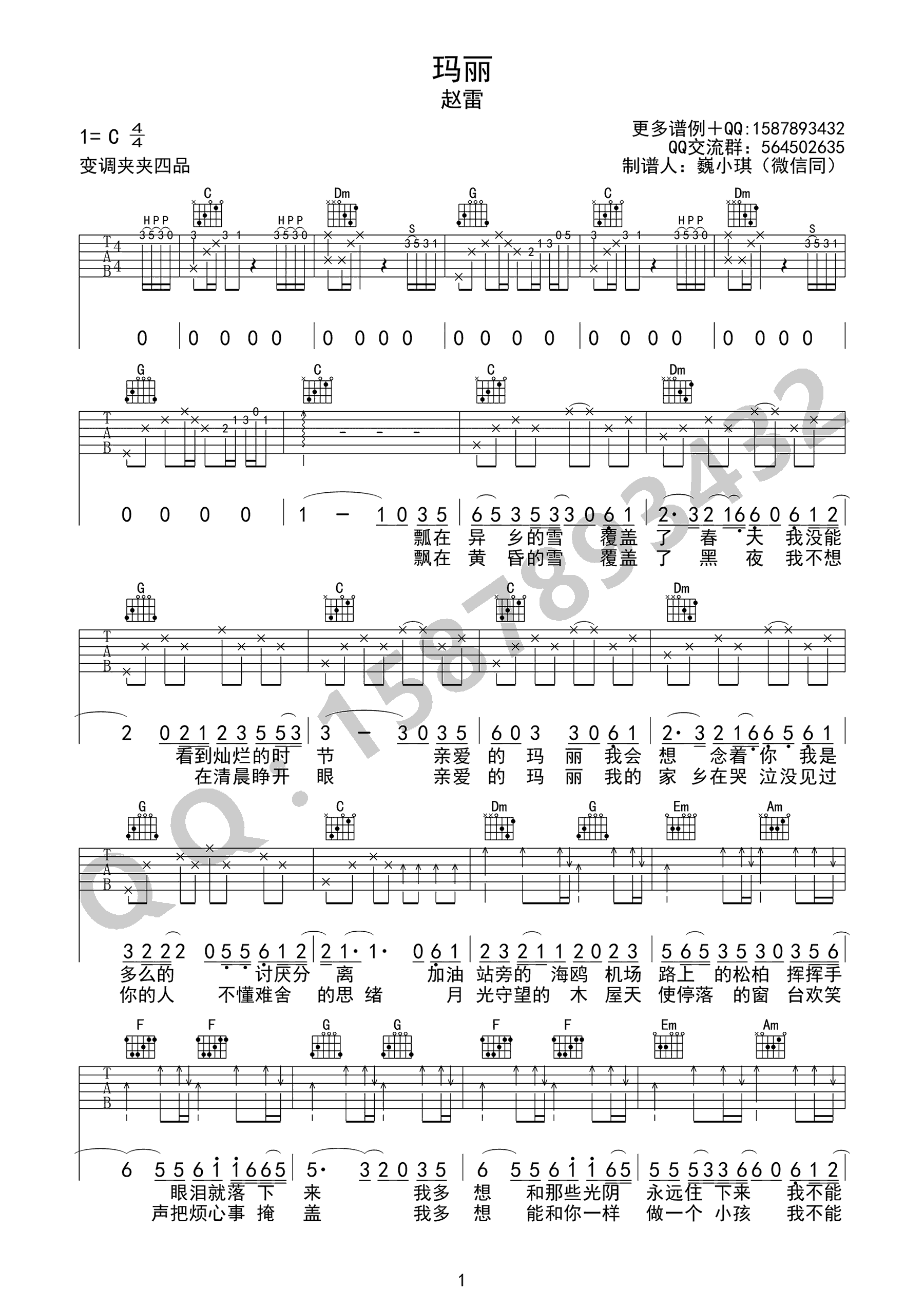 《赵雷《玛丽吉他谱》(G调)》内容来自于互联网,不能保证内容的准确性与完整性,仅供学习交流欣赏,请勿用于其它用途,内容版权归原作者及来源网站所有,如有侵犯到您的权益请来信告知,我们将及时删除。