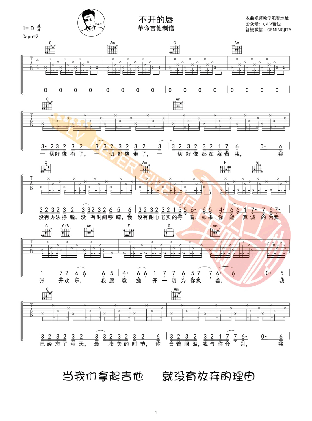 《赵雷《不开的唇吉他谱》(C调)》内容来自于互联网,不能保证内容的准确性与完整性,仅供学习交流欣赏,请勿用于其它用途,内容版权归原作者及来源网站所有,如有侵犯到您的权益请来信告知,我们将及时删除。