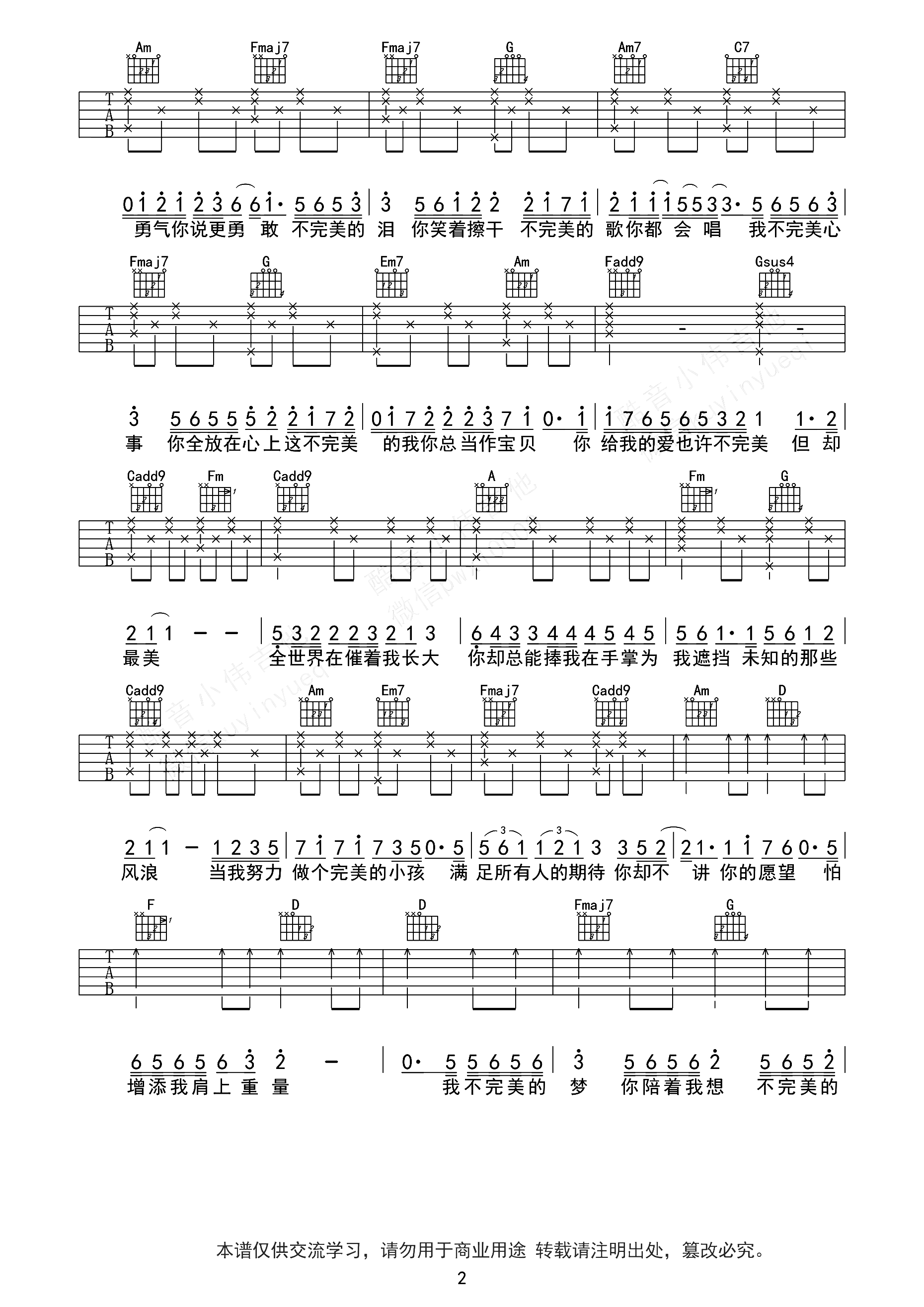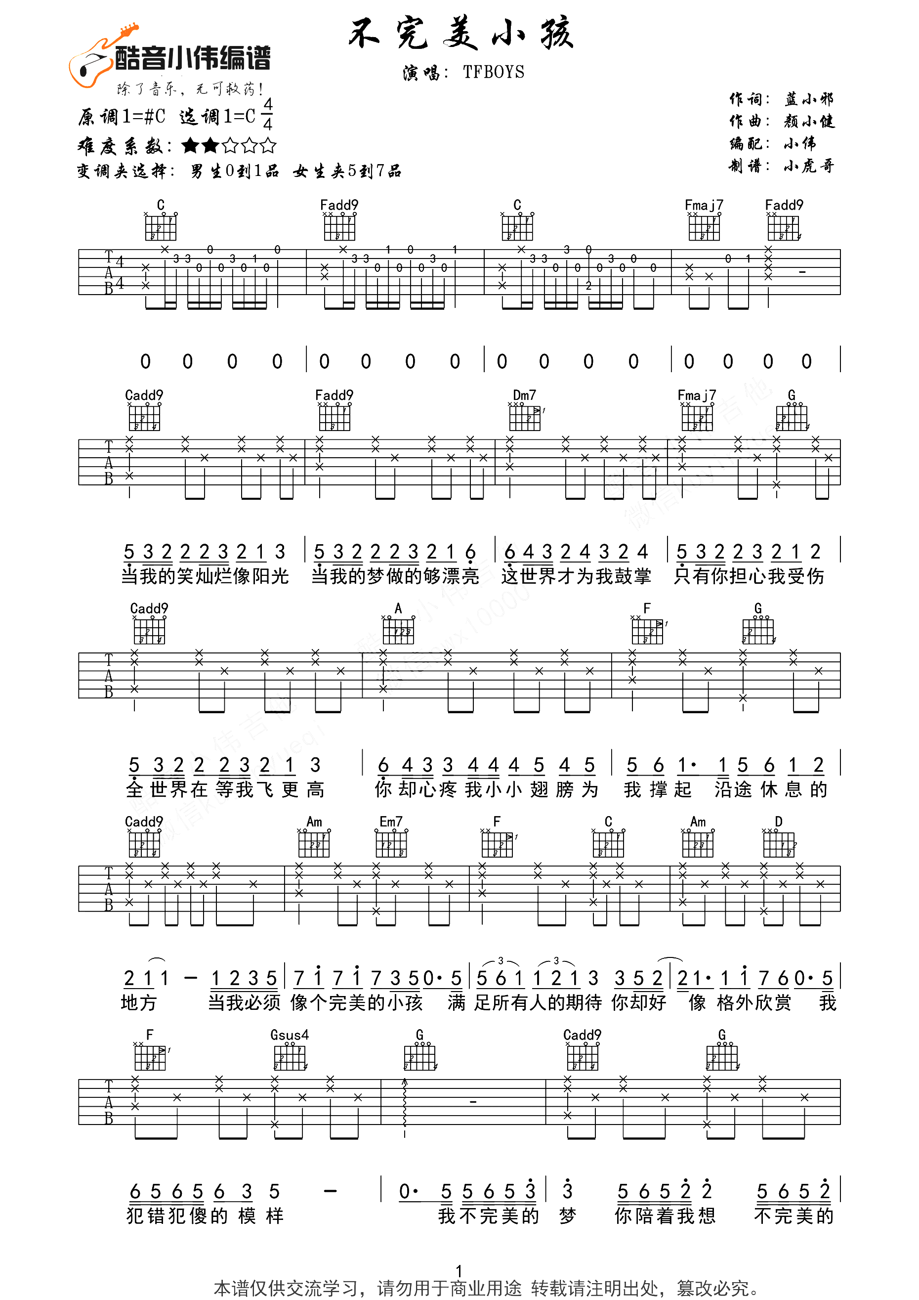 《Tfboys《不完美小孩吉他谱》(G调)》内容来自于互联网,不能保证内容的准确性与完整性,仅供学习交流欣赏,请勿用于其它用途,内容版权归原作者及来源网站所有,如有侵犯到您的权益请来信告知,我们将及时删除。