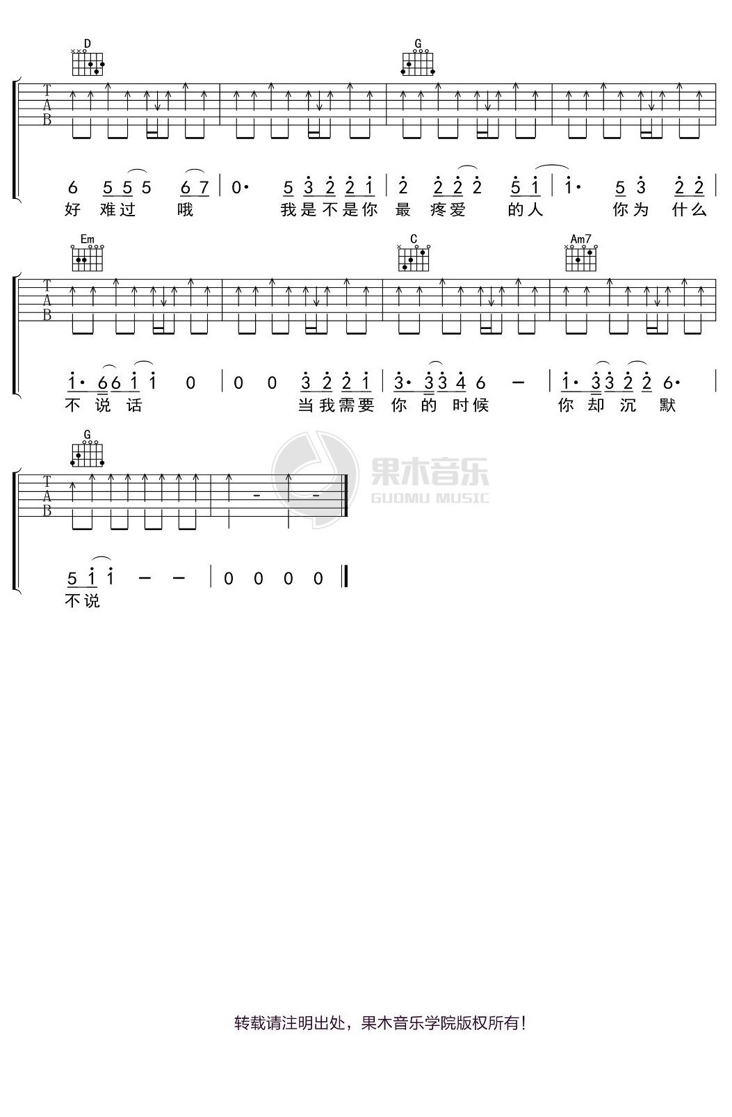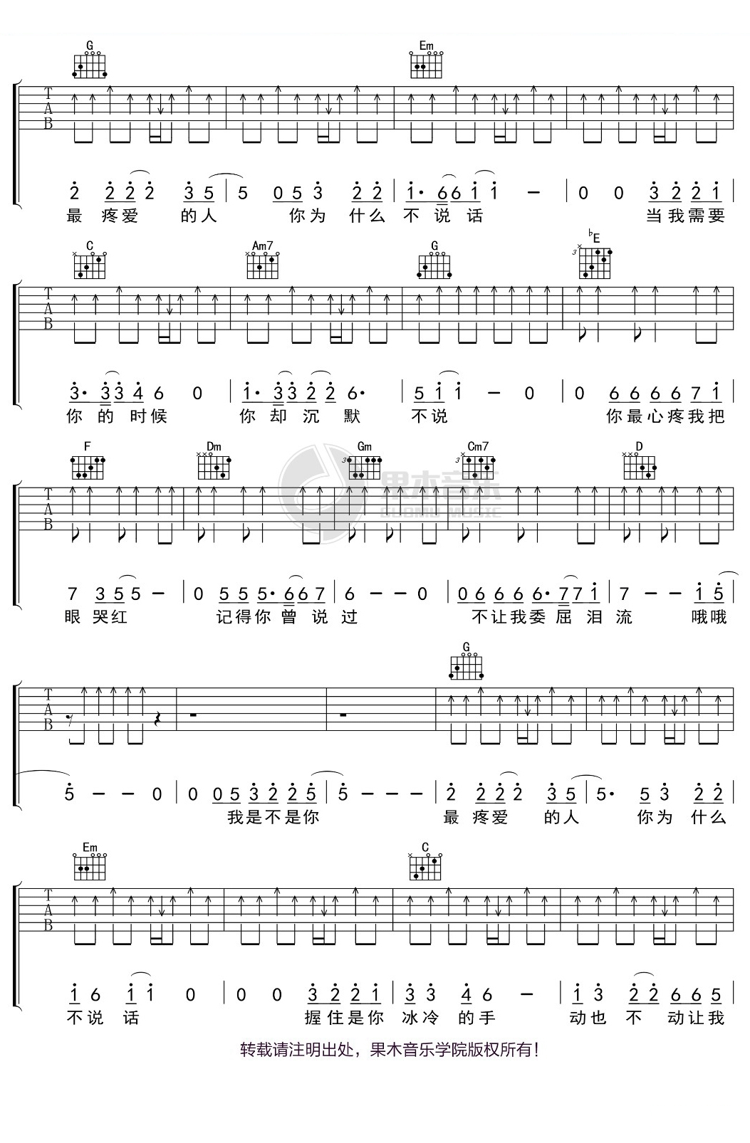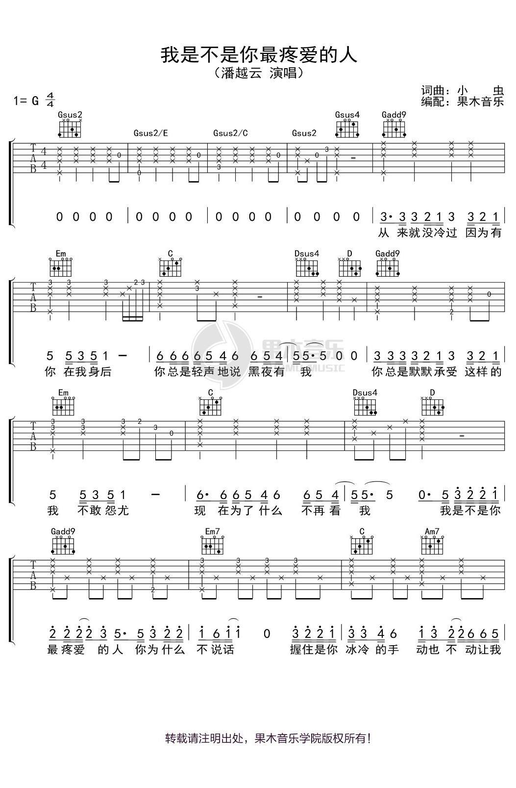 《李代沫/潘越云《我是不是你最疼爱的人吉他谱》(C调)》内容来自于互联网,不能保证内容的准确性与完整性,仅供学习交流欣赏,请勿用于其它用途,内容版权归原作者及来源网站所有,如有侵犯到您的权益请来信告知,我们将及时删除。