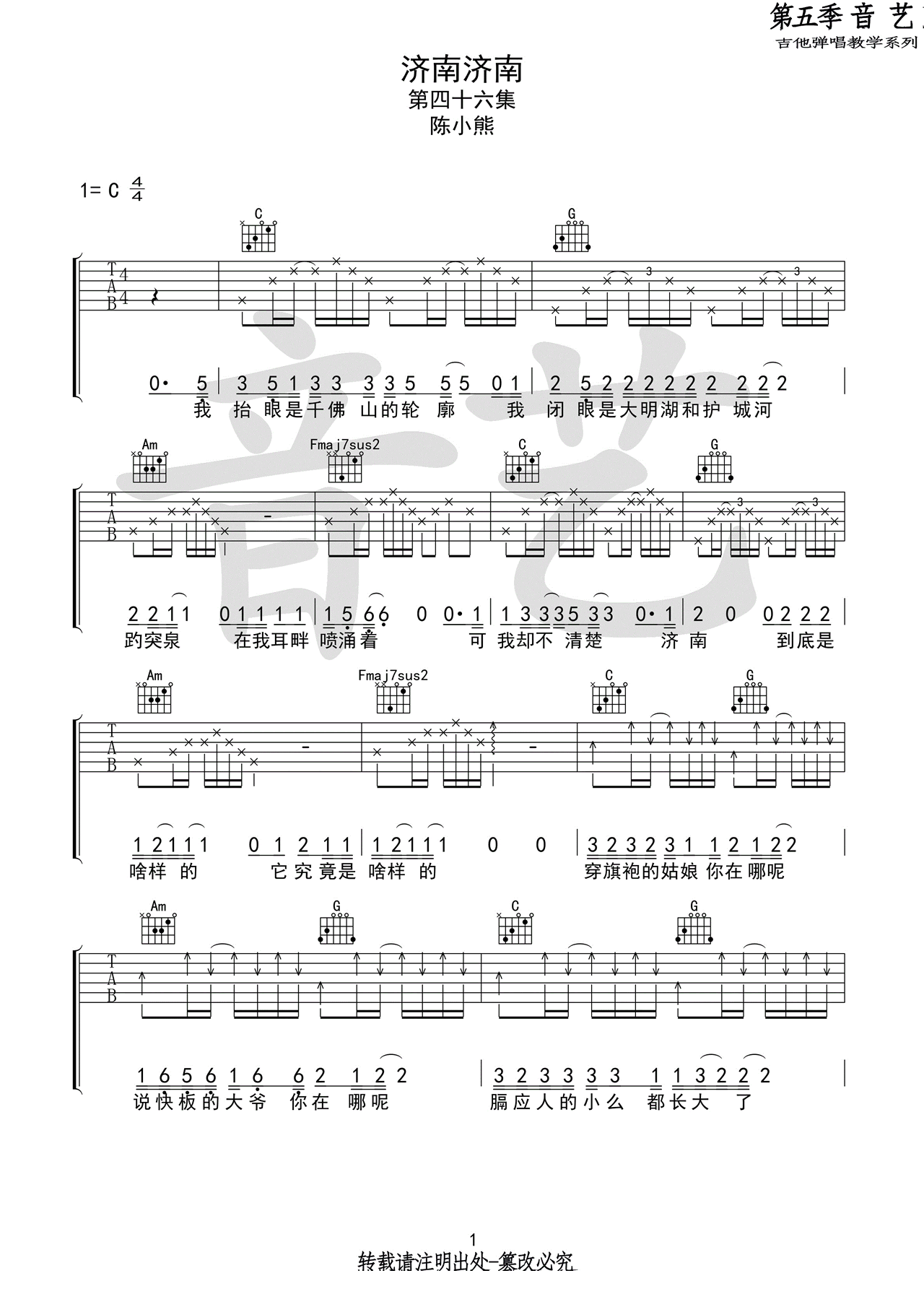 《陈小熊《济南济南吉他谱》(C调)》内容来自于互联网,不能保证内容的准确性与完整性,仅供学习交流欣赏,请勿用于其它用途,内容版权归原作者及来源网站所有,如有侵犯到您的权益请来信告知,我们将及时删除。