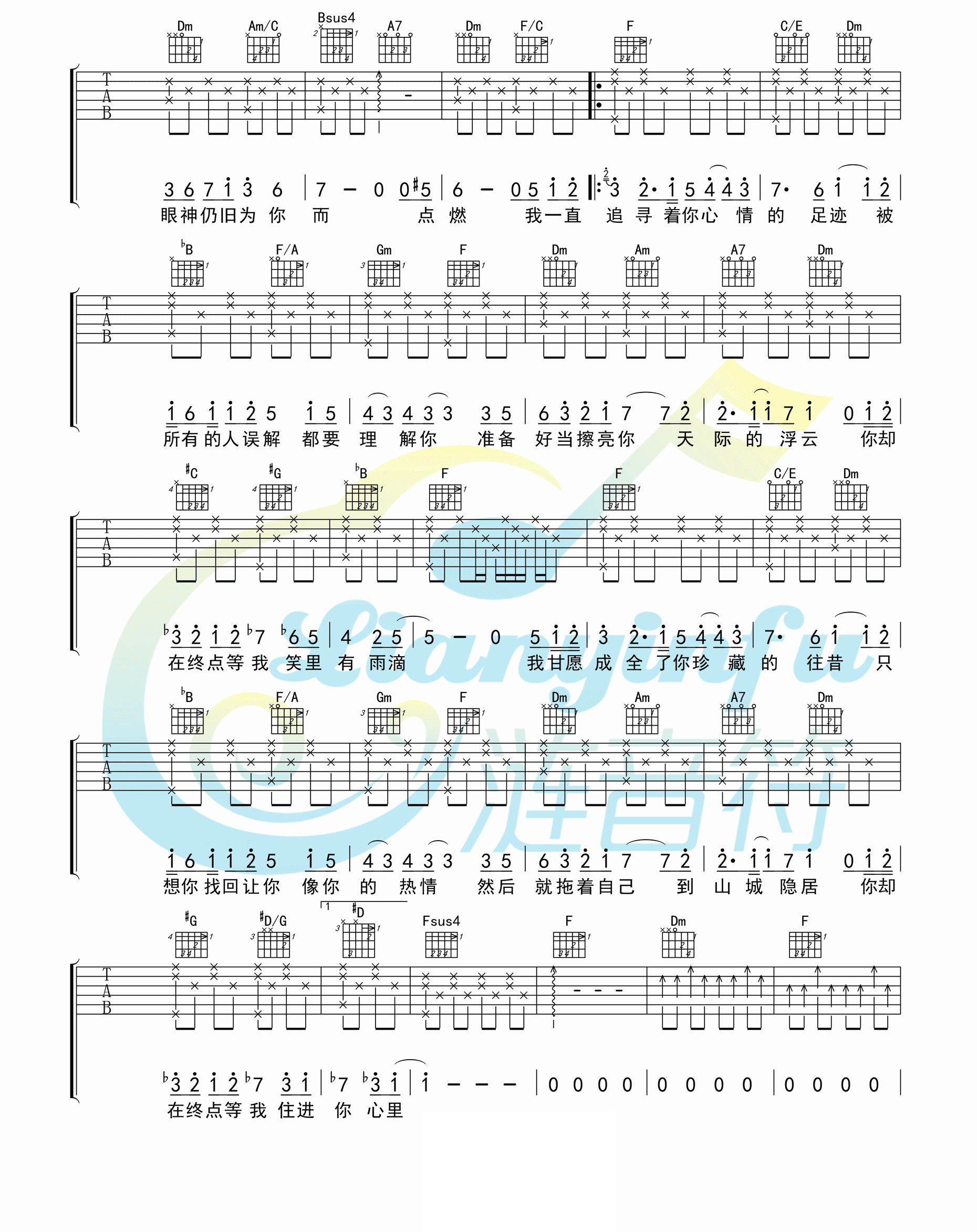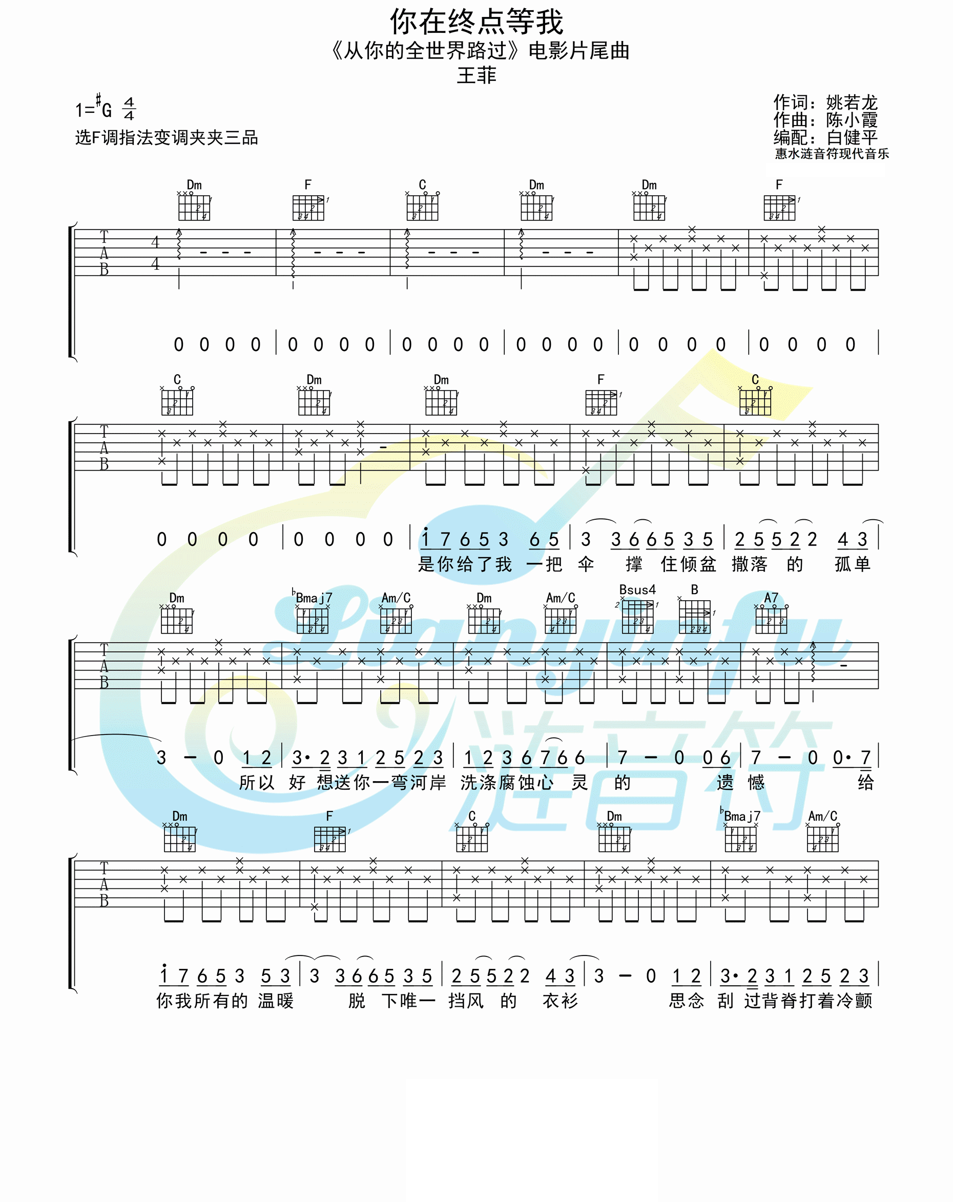 《王菲《你在终点等我吉他谱》(C调)》内容来自于互联网,不能保证内容的准确性与完整性,仅供学习交流欣赏,请勿用于其它用途,内容版权归原作者及来源网站所有,如有侵犯到您的权益请来信告知,我们将及时删除。