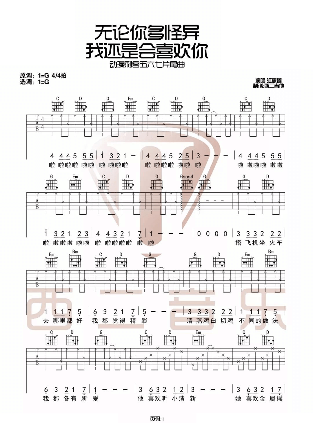 《刺客伍六七《无论你多怪异我还是会喜欢你吉他谱》(G调)》内容来自于互联网,不能保证内容的准确性与完整性,仅供学习交流欣赏,请勿用于其它用途,内容版权归原作者及来源网站所有,如有侵犯到您的权益请来信告知,我们将及时删除。