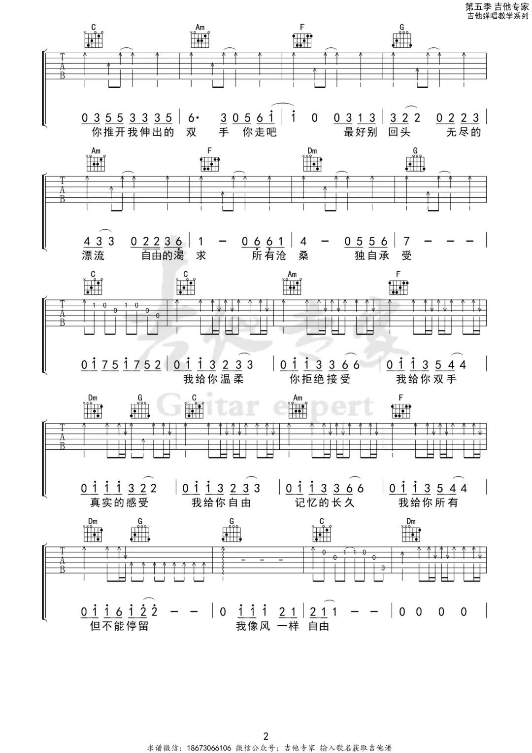 《许巍《像风一样自由吉他谱》(C调)》内容来自于互联网,不能保证内容的准确性与完整性,仅供学习交流欣赏,请勿用于其它用途,内容版权归原作者及来源网站所有,如有侵犯到您的权益请来信告知,我们将及时删除。