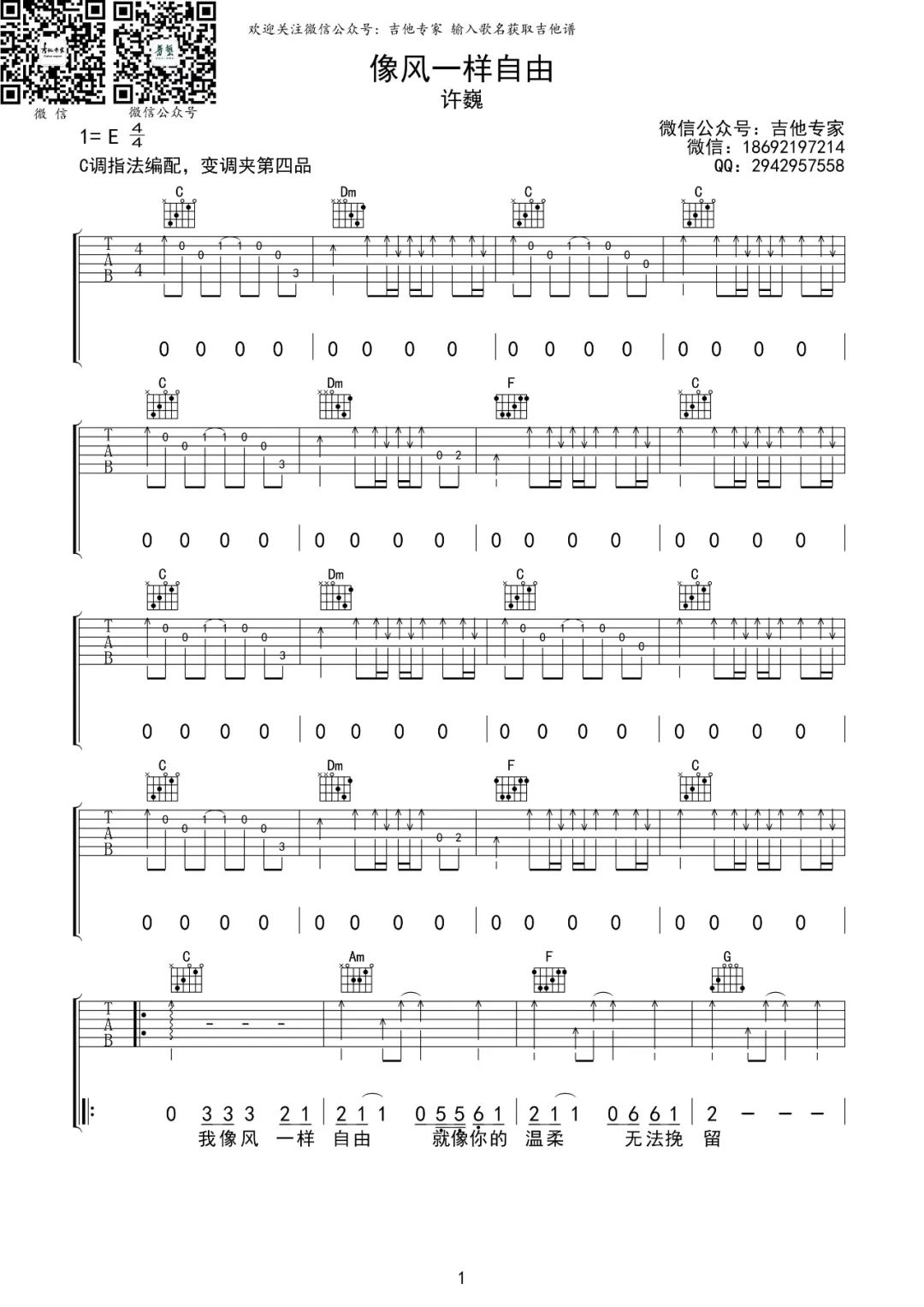 本文标题 《许巍《像风一样自由吉他谱》(C调)》,网址:https://www.21qupu.com/guitar/62322.html