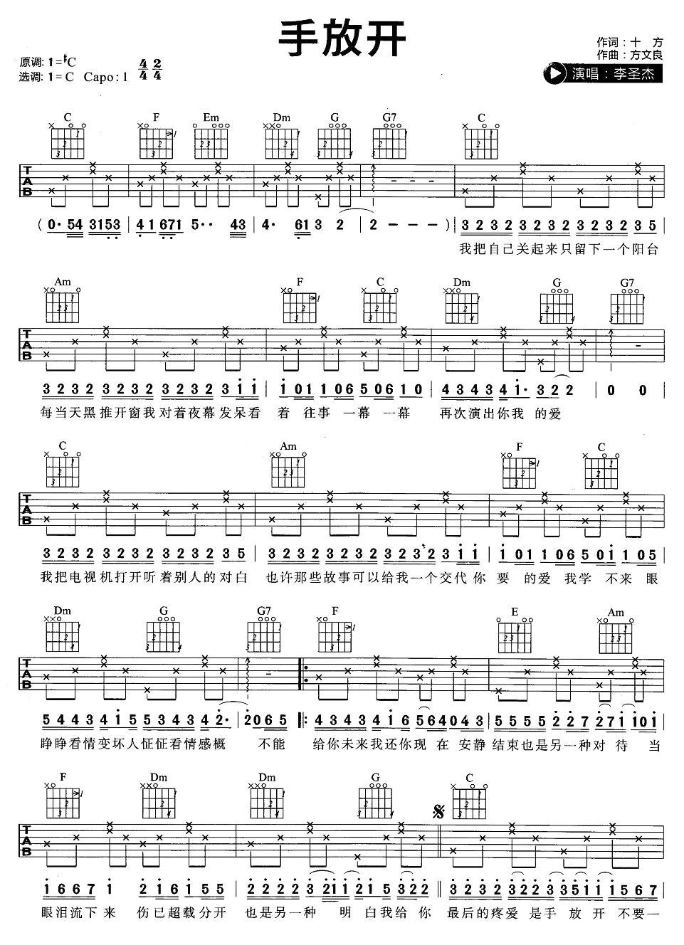 《李圣杰《手放开吉他谱》(G调)》内容来自于互联网,不能保证内容的准确性与完整性,仅供学习交流欣赏,请勿用于其它用途,内容版权归原作者及来源网站所有,如有侵犯到您的权益请来信告知,我们将及时删除。