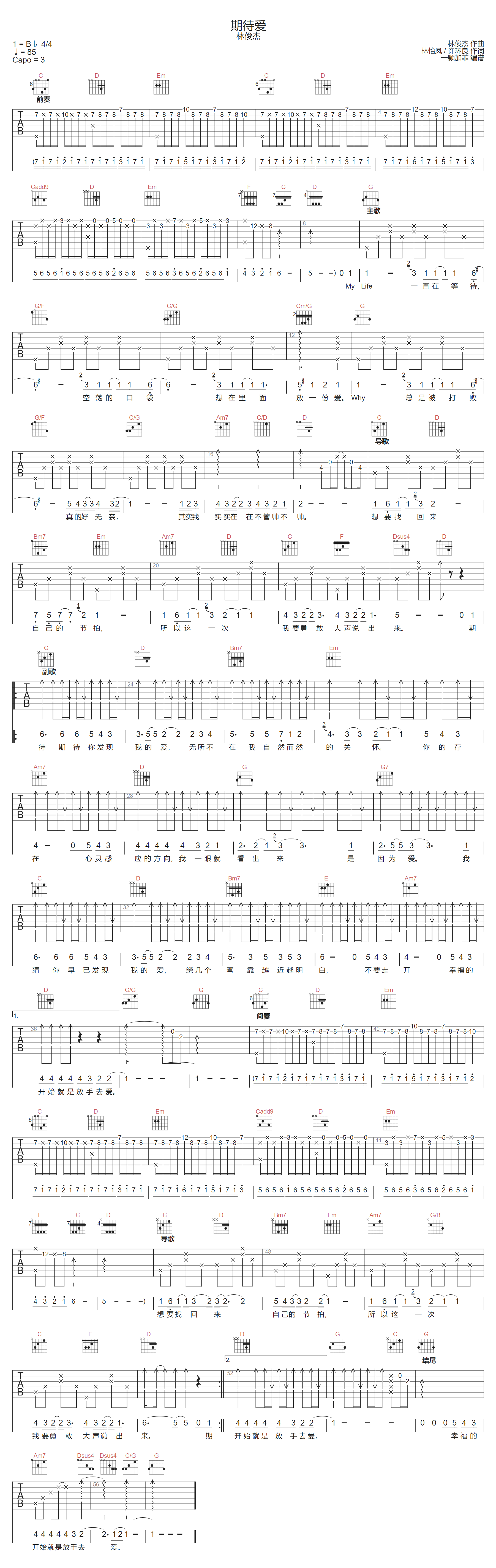《林俊杰/金莎《期待爱吉他谱》(G调)》内容来自于互联网,不能保证内容的准确性与完整性,仅供学习交流欣赏,请勿用于其它用途,内容版权归原作者及来源网站所有,如有侵犯到您的权益请来信告知,我们将及时删除。