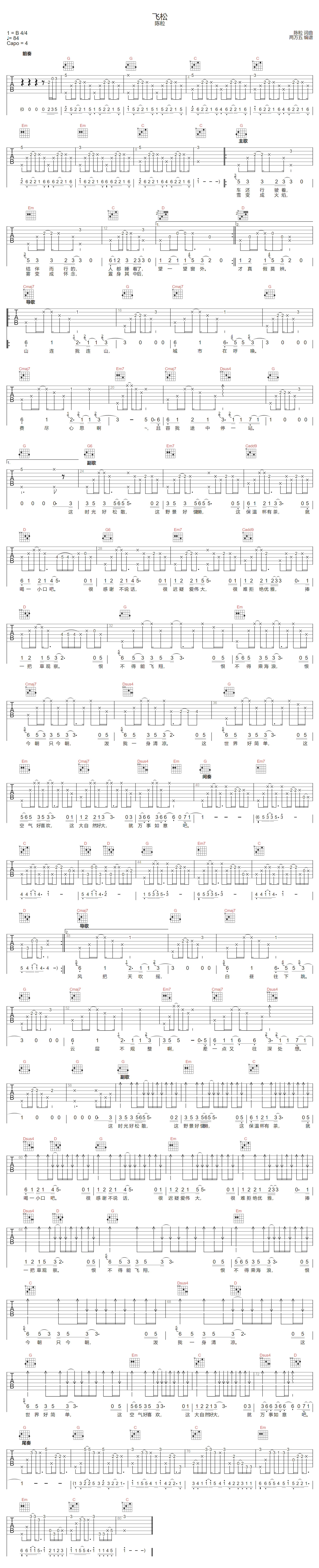 《陈粒《飞松吉他谱》(C调)》内容来自于互联网,不能保证内容的准确性与完整性,仅供学习交流欣赏,请勿用于其它用途,内容版权归原作者及来源网站所有,如有侵犯到您的权益请来信告知,我们将及时删除。