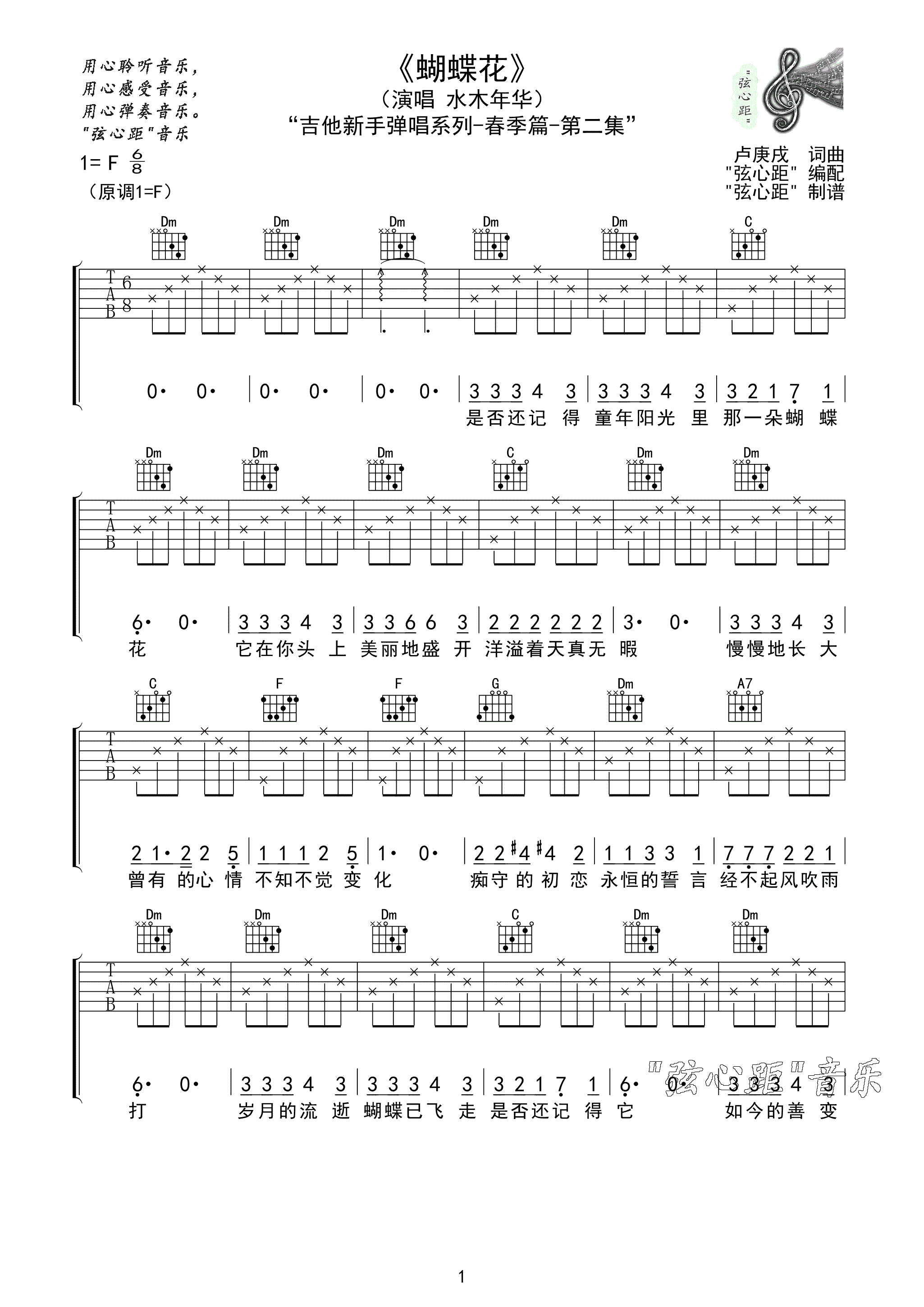 《水木年华《蝴蝶花吉他谱》(G调)》内容来自于互联网,不能保证内容的准确性与完整性,仅供学习交流欣赏,请勿用于其它用途,内容版权归原作者及来源网站所有,如有侵犯到您的权益请来信告知,我们将及时删除。