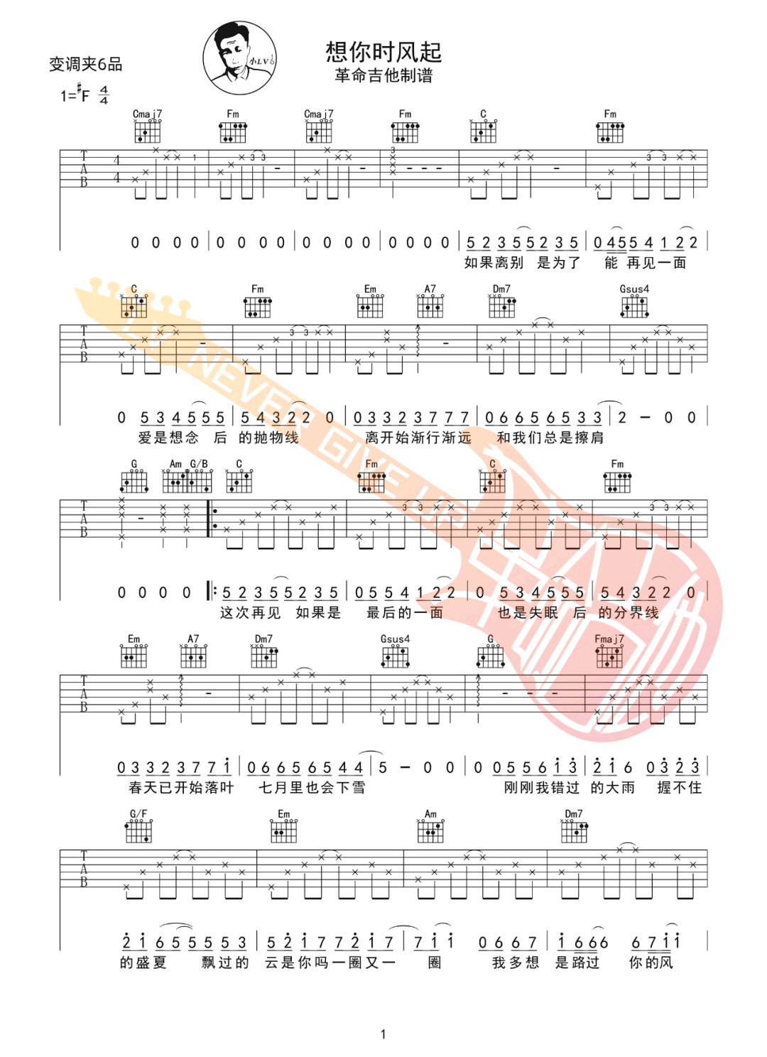 《单依纯《想你时风起吉他谱》(C调)》内容来自于互联网,不能保证内容的准确性与完整性,仅供学习交流欣赏,请勿用于其它用途,内容版权归原作者及来源网站所有,如有侵犯到您的权益请来信告知,我们将及时删除。
