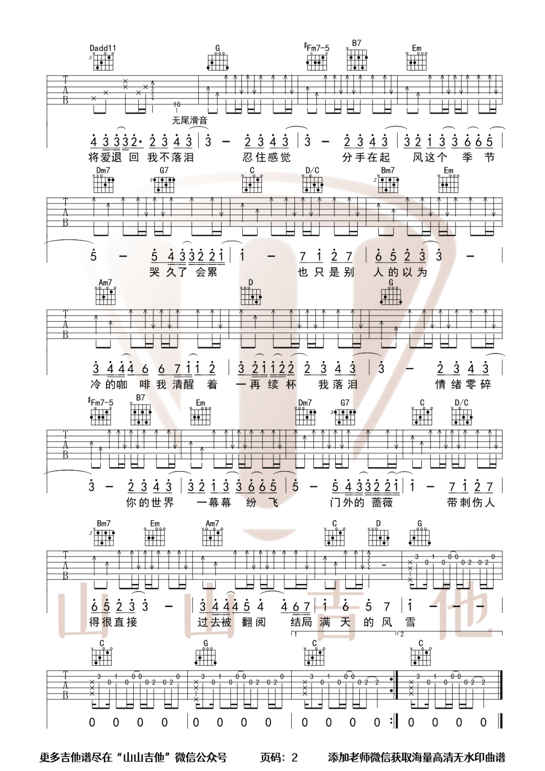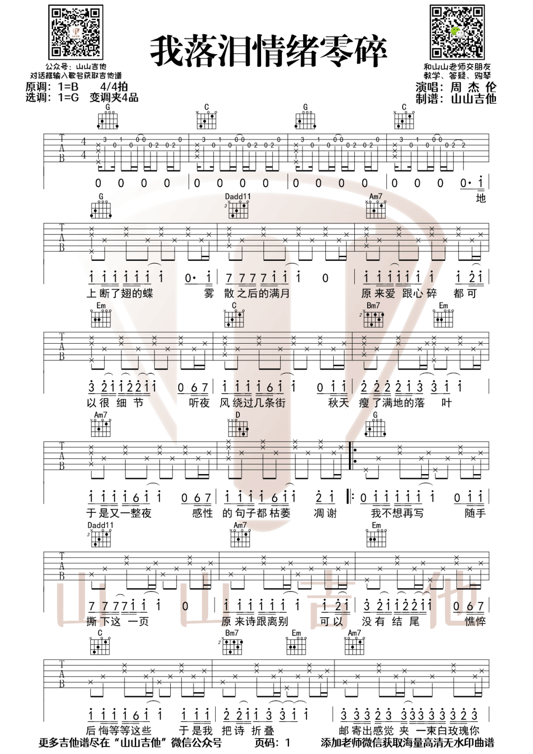 《周杰伦《我落泪情绪零碎吉他谱》(E调)》内容来自于互联网,不能保证内容的准确性与完整性,仅供学习交流欣赏,请勿用于其它用途,内容版权归原作者及来源网站所有,如有侵犯到您的权益请来信告知,我们将及时删除。
