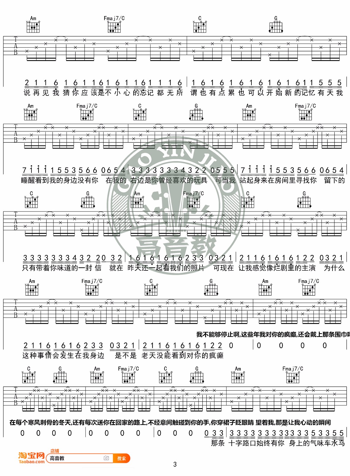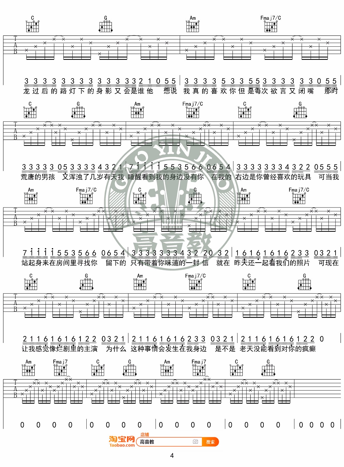 Cubi/Fi9《病变吉他谱》(G调)