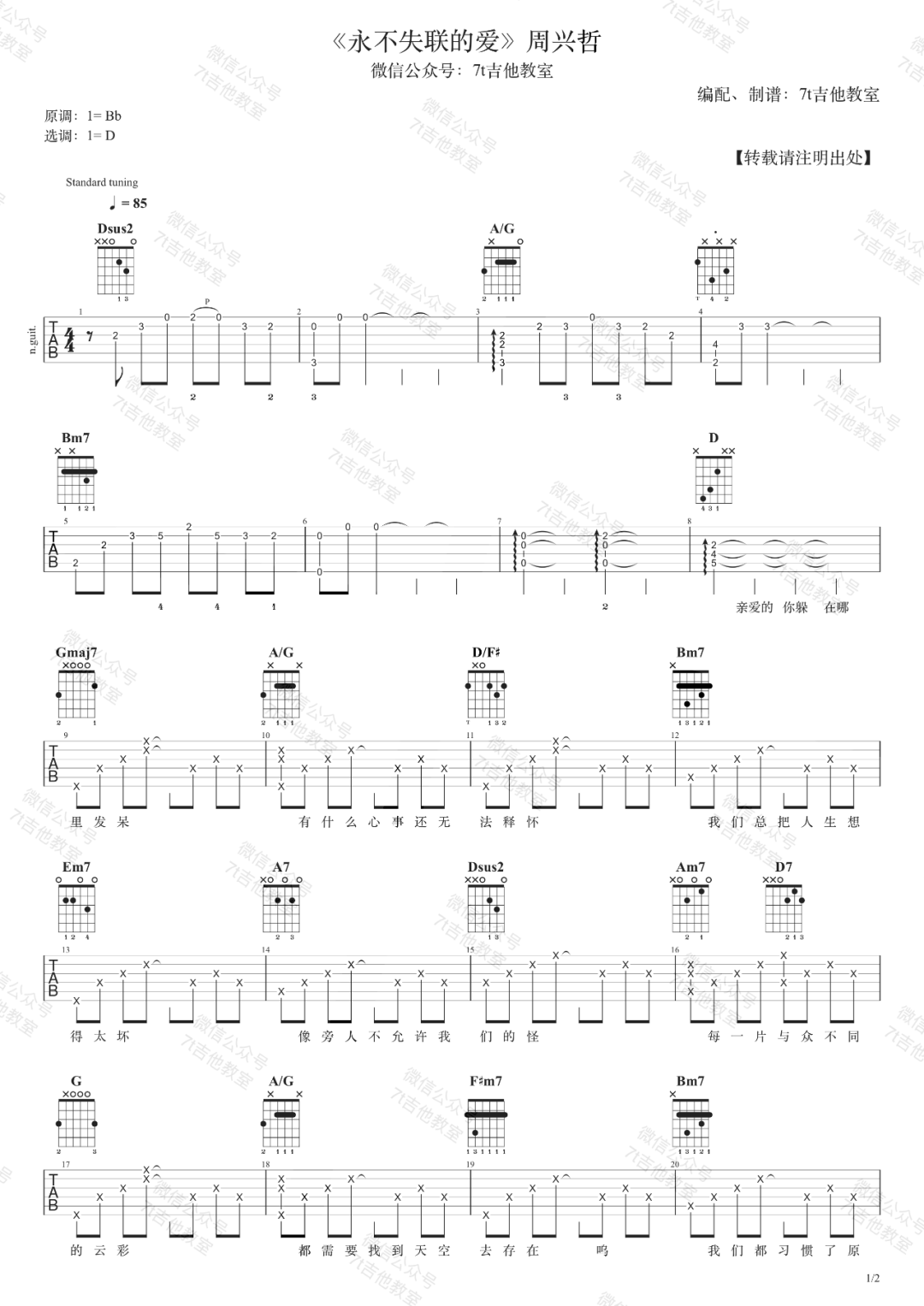 《周兴哲《永不失联的爱吉他谱》(C调)》内容来自于互联网,不能保证内容的准确性与完整性,仅供学习交流欣赏,请勿用于其它用途,内容版权归原作者及来源网站所有,如有侵犯到您的权益请来信告知,我们将及时删除。