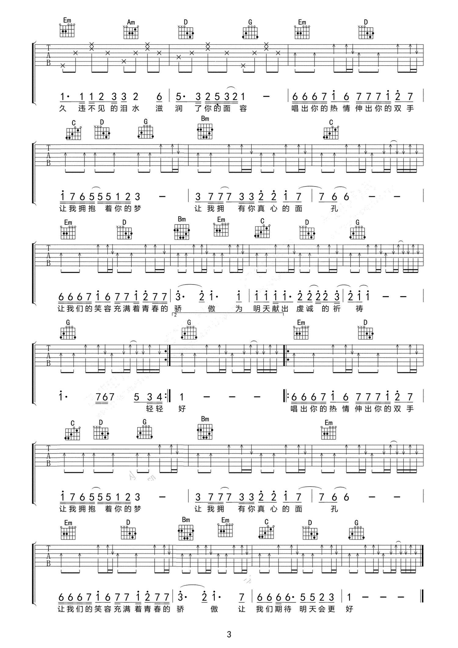 《罗大佑《明天会更好吉他谱》(C调)》内容来自于互联网,不能保证内容的准确性与完整性,仅供学习交流欣赏,请勿用于其它用途,内容版权归原作者及来源网站所有,如有侵犯到您的权益请来信告知,我们将及时删除。