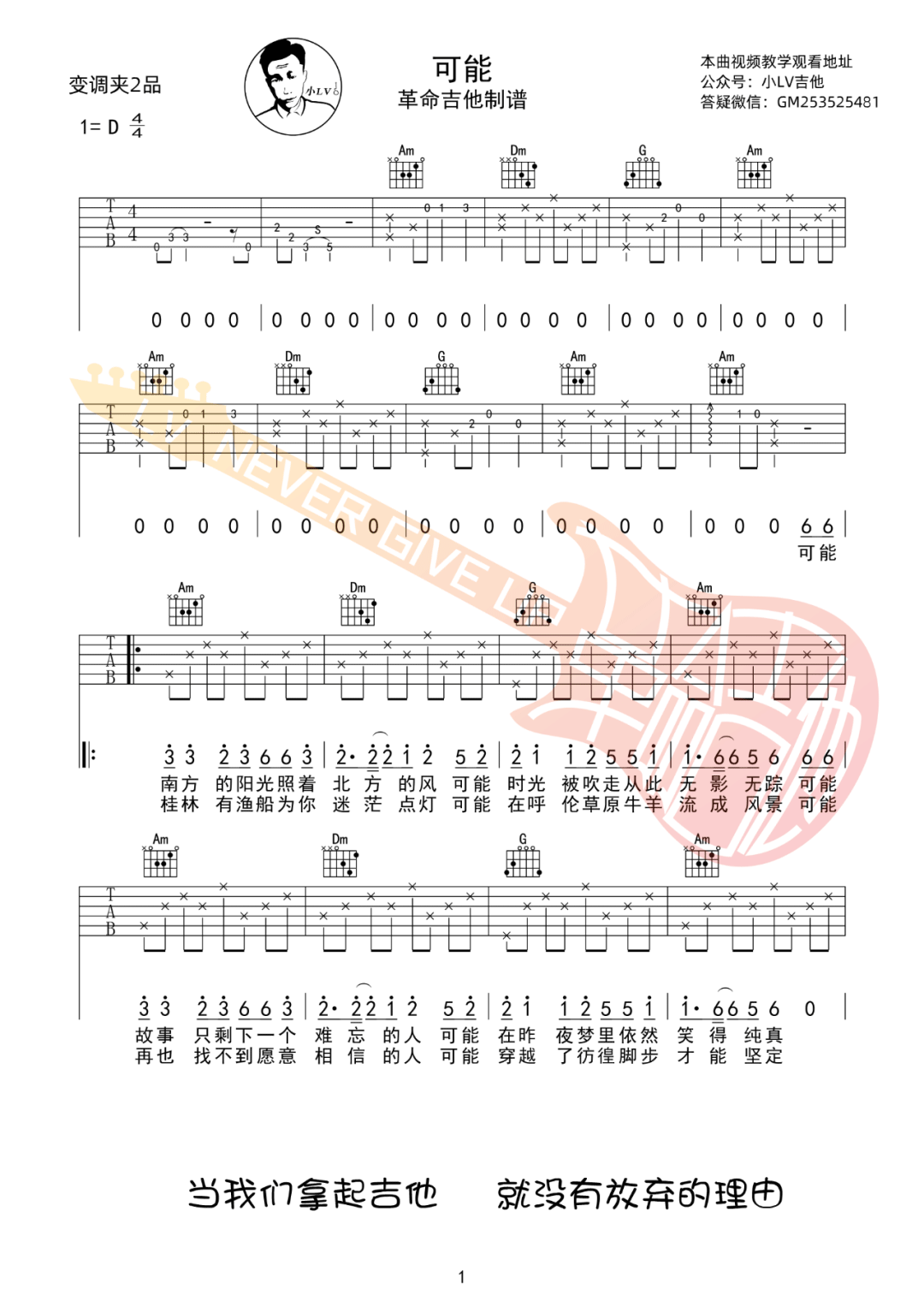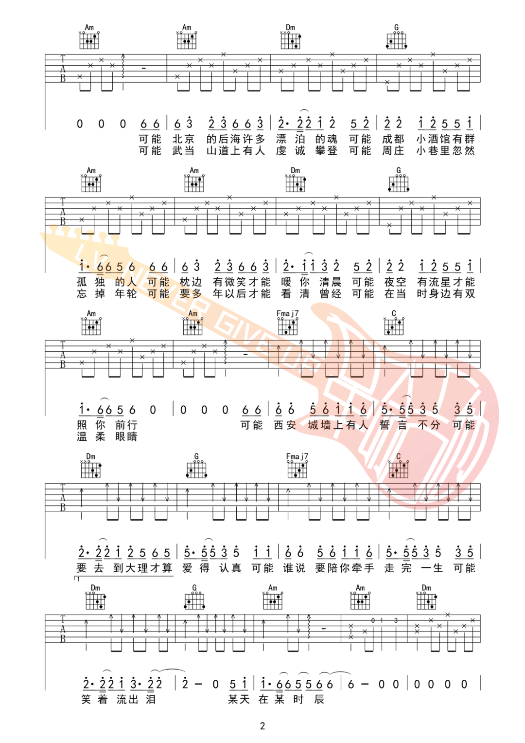 《程响《可能吉他谱》(G调)》内容来自于互联网,不能保证内容的准确性与完整性,仅供学习交流欣赏,请勿用于其它用途,内容版权归原作者及来源网站所有,如有侵犯到您的权益请来信告知,我们将及时删除。