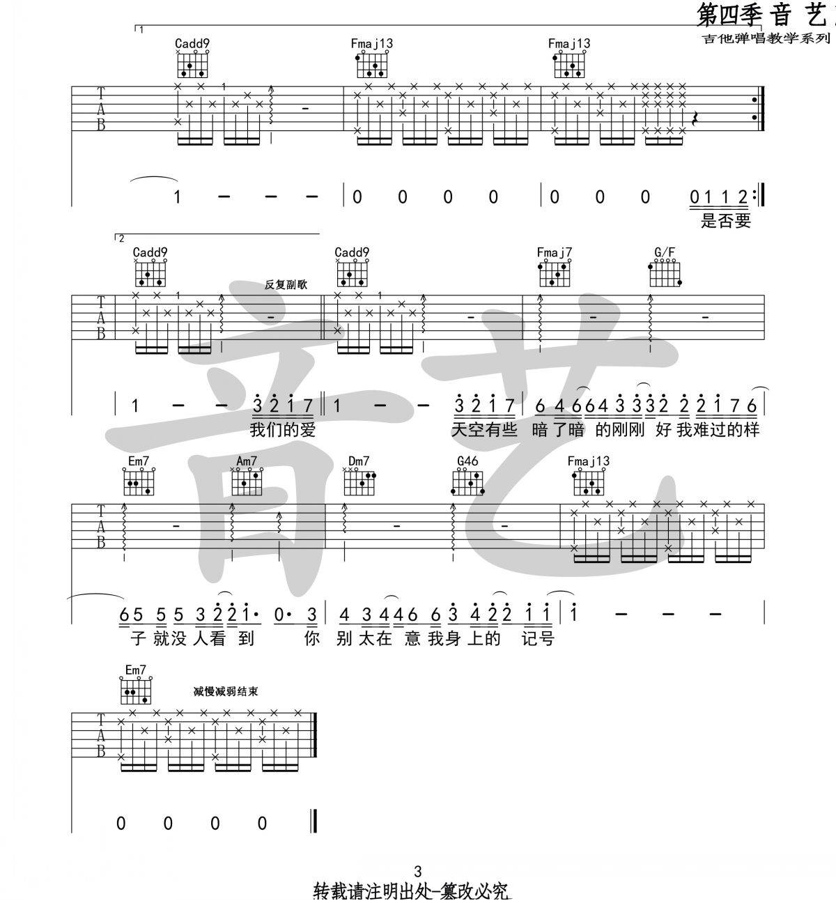 《薛之谦《刚刚好吉他谱》(C调)》内容来自于互联网,不能保证内容的准确性与完整性,仅供学习交流欣赏,请勿用于其它用途,内容版权归原作者及来源网站所有,如有侵犯到您的权益请来信告知,我们将及时删除。
