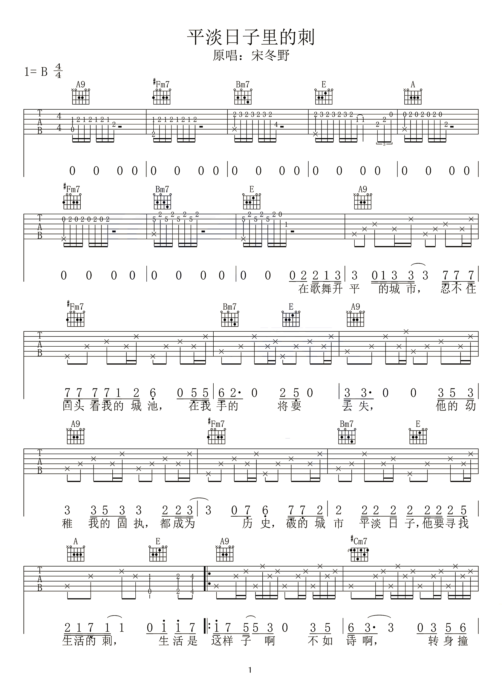 《宋冬野《平淡日子里的刺吉他谱》(G调)》内容来自于互联网,不能保证内容的准确性与完整性,仅供学习交流欣赏,请勿用于其它用途,内容版权归原作者及来源网站所有,如有侵犯到您的权益请来信告知,我们将及时删除。
