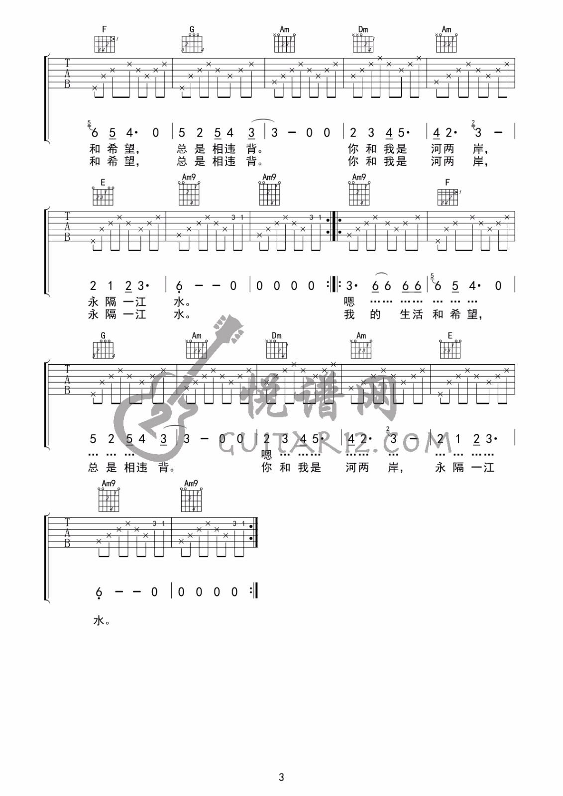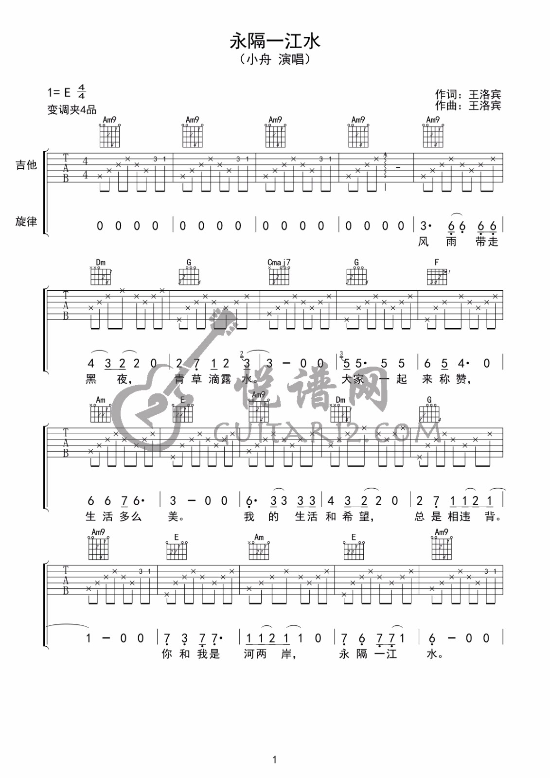 《小舟《永隔一江水吉他谱》(C调)》内容来自于互联网,不能保证内容的准确性与完整性,仅供学习交流欣赏,请勿用于其它用途,内容版权归原作者及来源网站所有,如有侵犯到您的权益请来信告知,我们将及时删除。