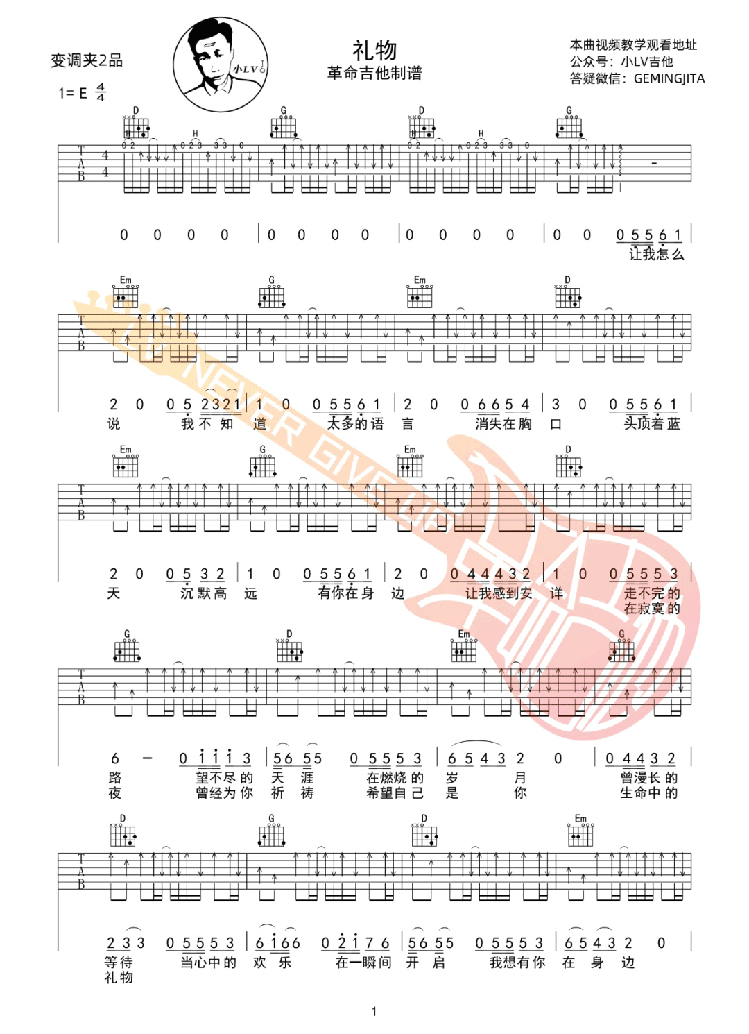 《许巍《礼物吉他谱》(C调)》内容来自于互联网,不能保证内容的准确性与完整性,仅供学习交流欣赏,请勿用于其它用途,内容版权归原作者及来源网站所有,如有侵犯到您的权益请来信告知,我们将及时删除。