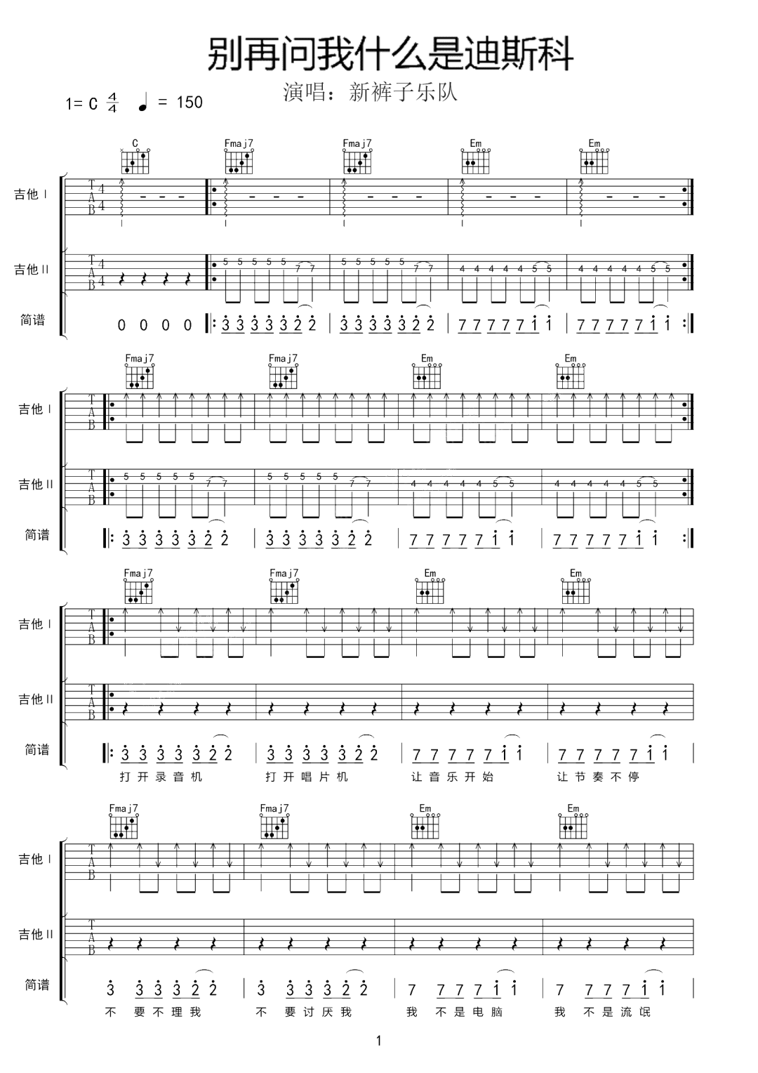 《新裤子《别再问我什么是迪斯科吉他谱》(G调)》内容来自于互联网,不能保证内容的准确性与完整性,仅供学习交流欣赏,请勿用于其它用途,内容版权归原作者及来源网站所有,如有侵犯到您的权益请来信告知,我们将及时删除。