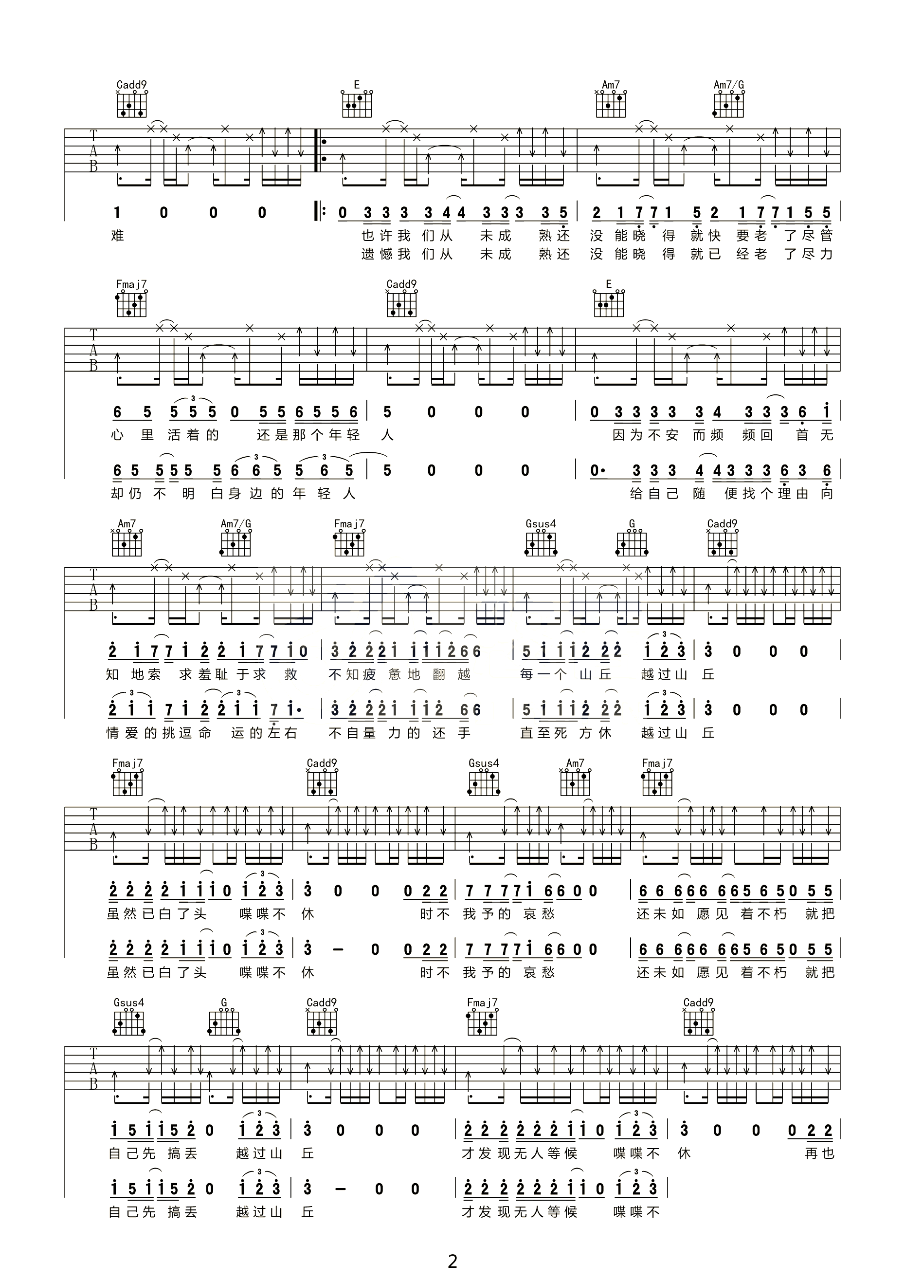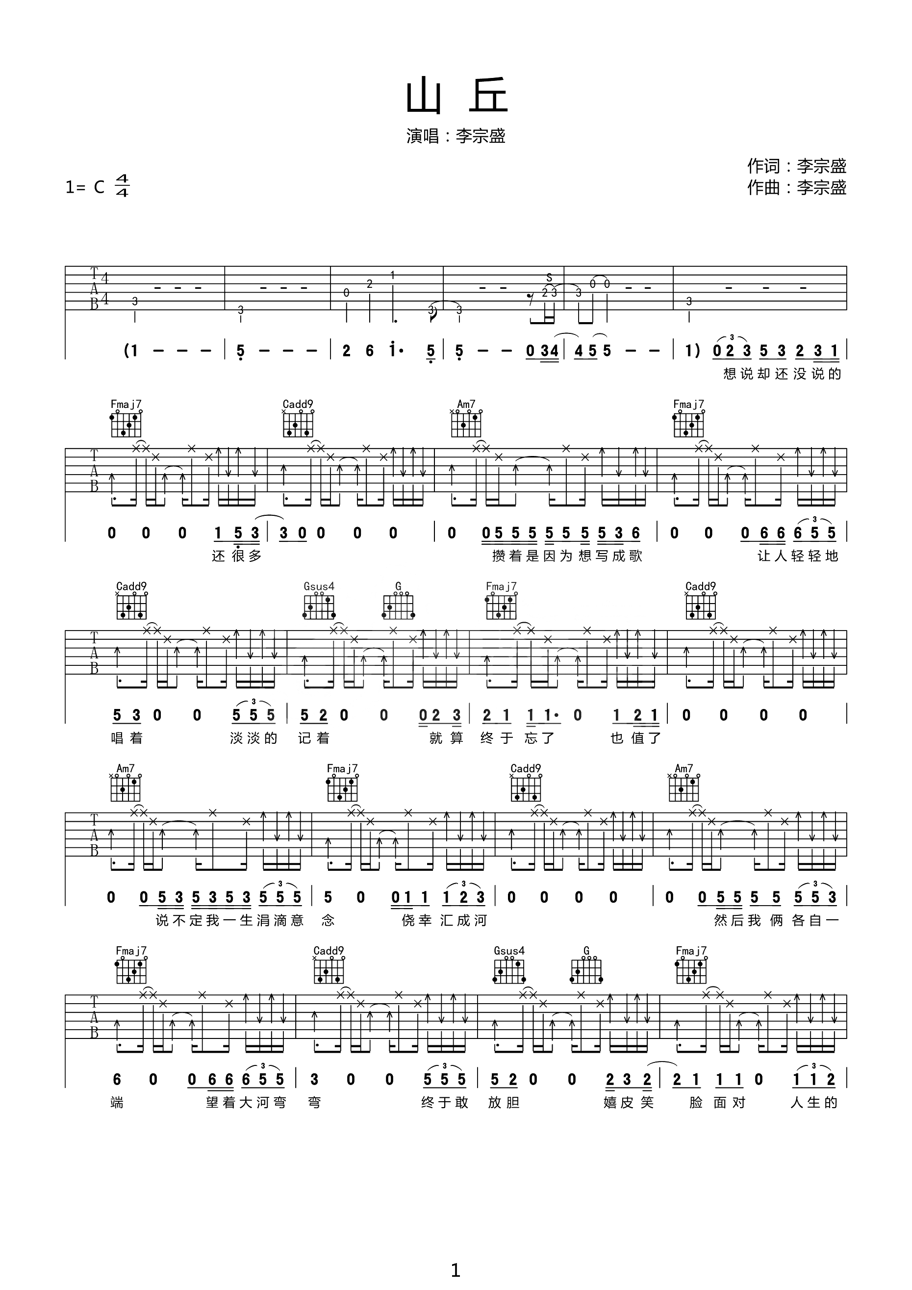 《李宗盛《山丘吉他谱》(C调)》内容来自于互联网,不能保证内容的准确性与完整性,仅供学习交流欣赏,请勿用于其它用途,内容版权归原作者及来源网站所有,如有侵犯到您的权益请来信告知,我们将及时删除。
