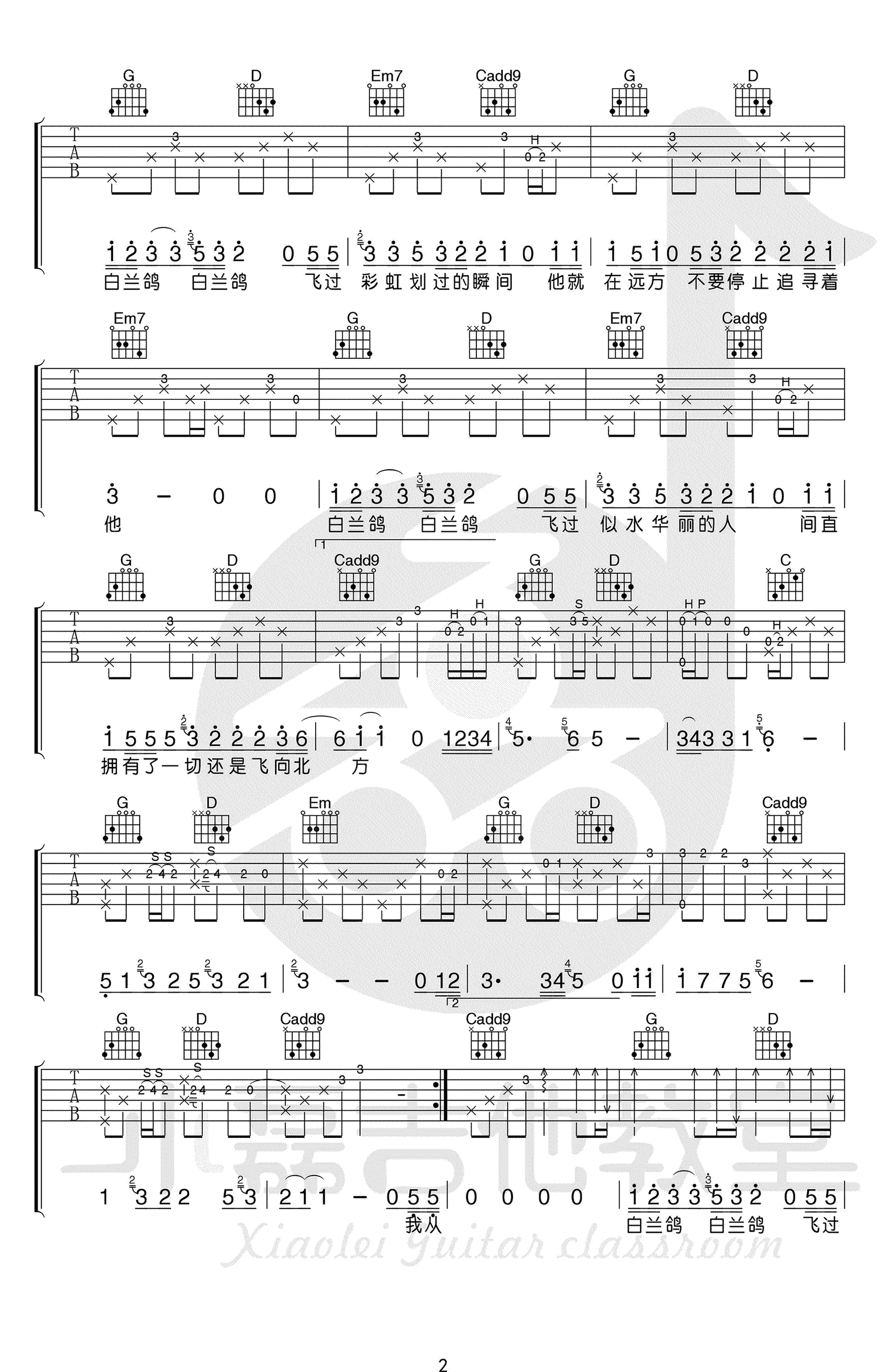 《丢火车乐队《白兰鸽巡游记吉他谱》(C调)》内容来自于互联网,不能保证内容的准确性与完整性,仅供学习交流欣赏,请勿用于其它用途,内容版权归原作者及来源网站所有,如有侵犯到您的权益请来信告知,我们将及时删除。