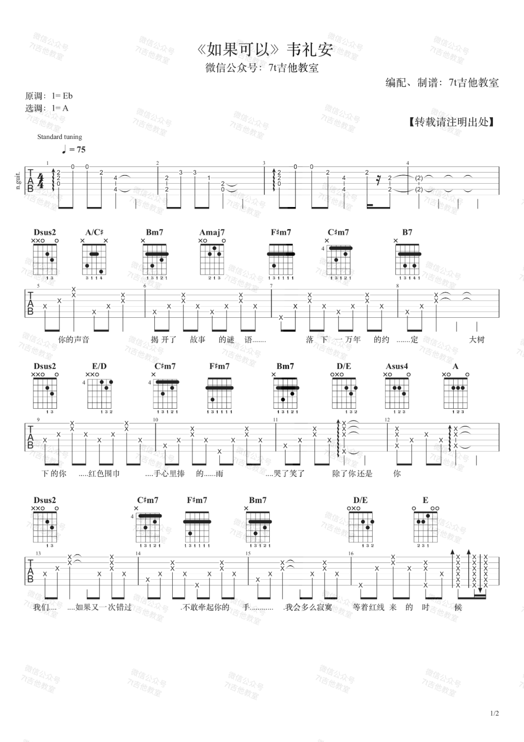《韦礼安《如果可以吉他谱》(C调)》内容来自于互联网,不能保证内容的准确性与完整性,仅供学习交流欣赏,请勿用于其它用途,内容版权归原作者及来源网站所有,如有侵犯到您的权益请来信告知,我们将及时删除。